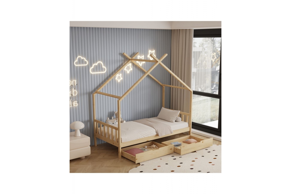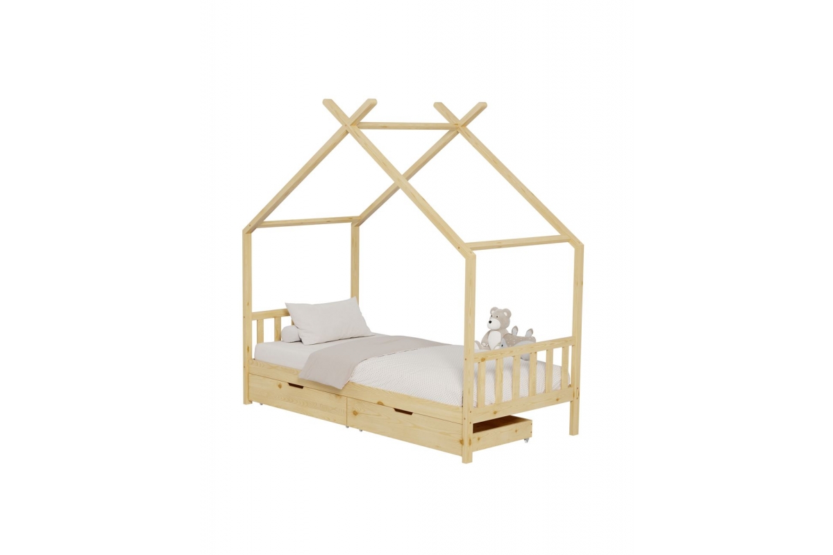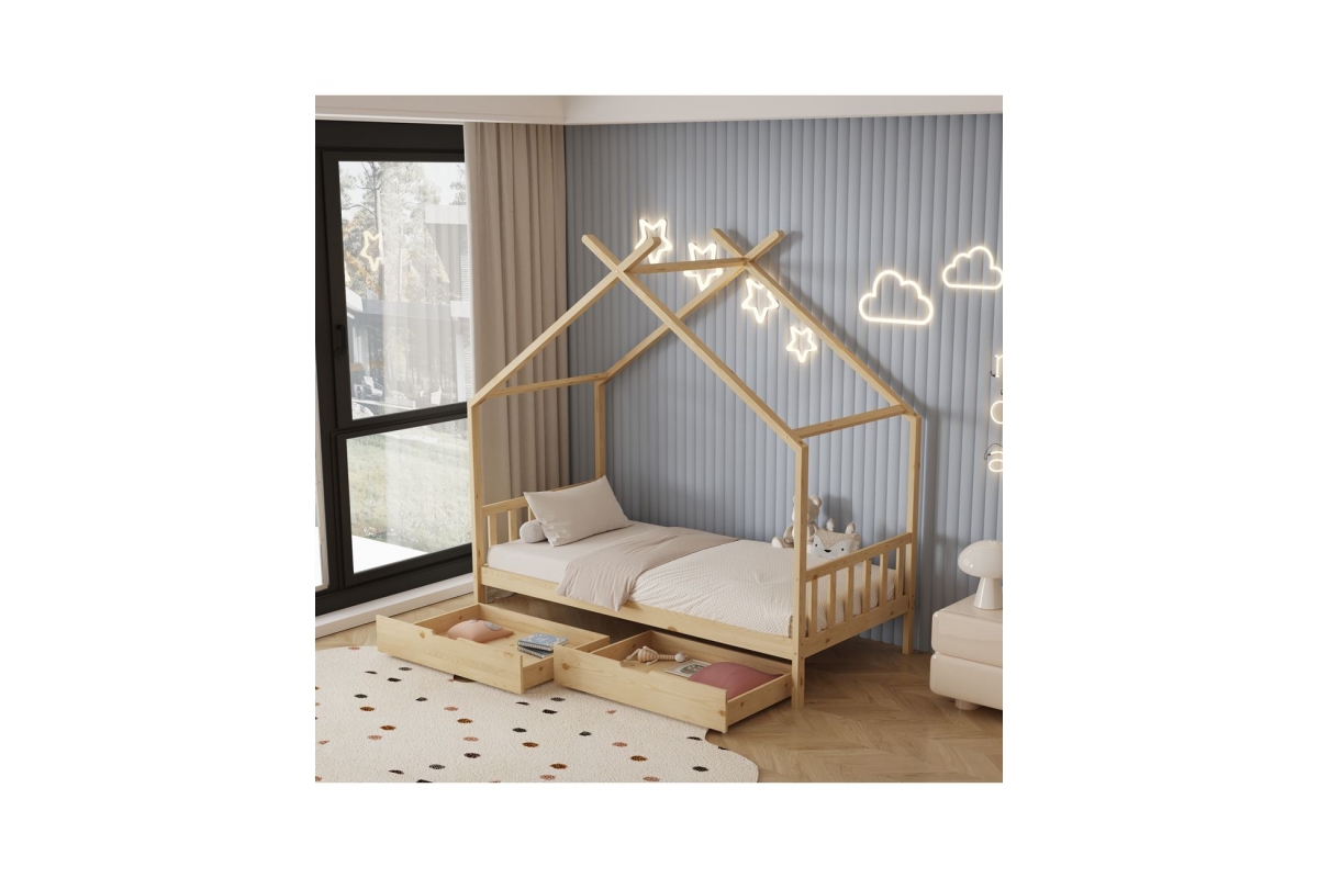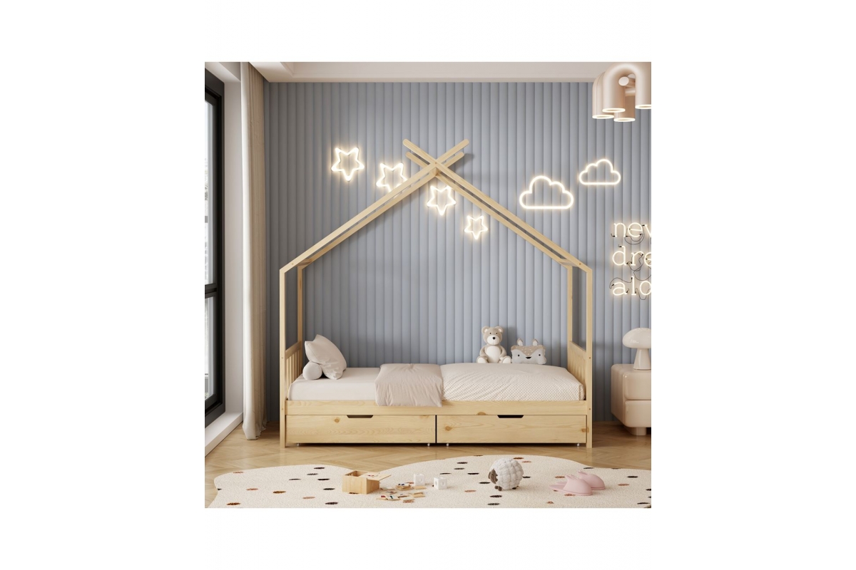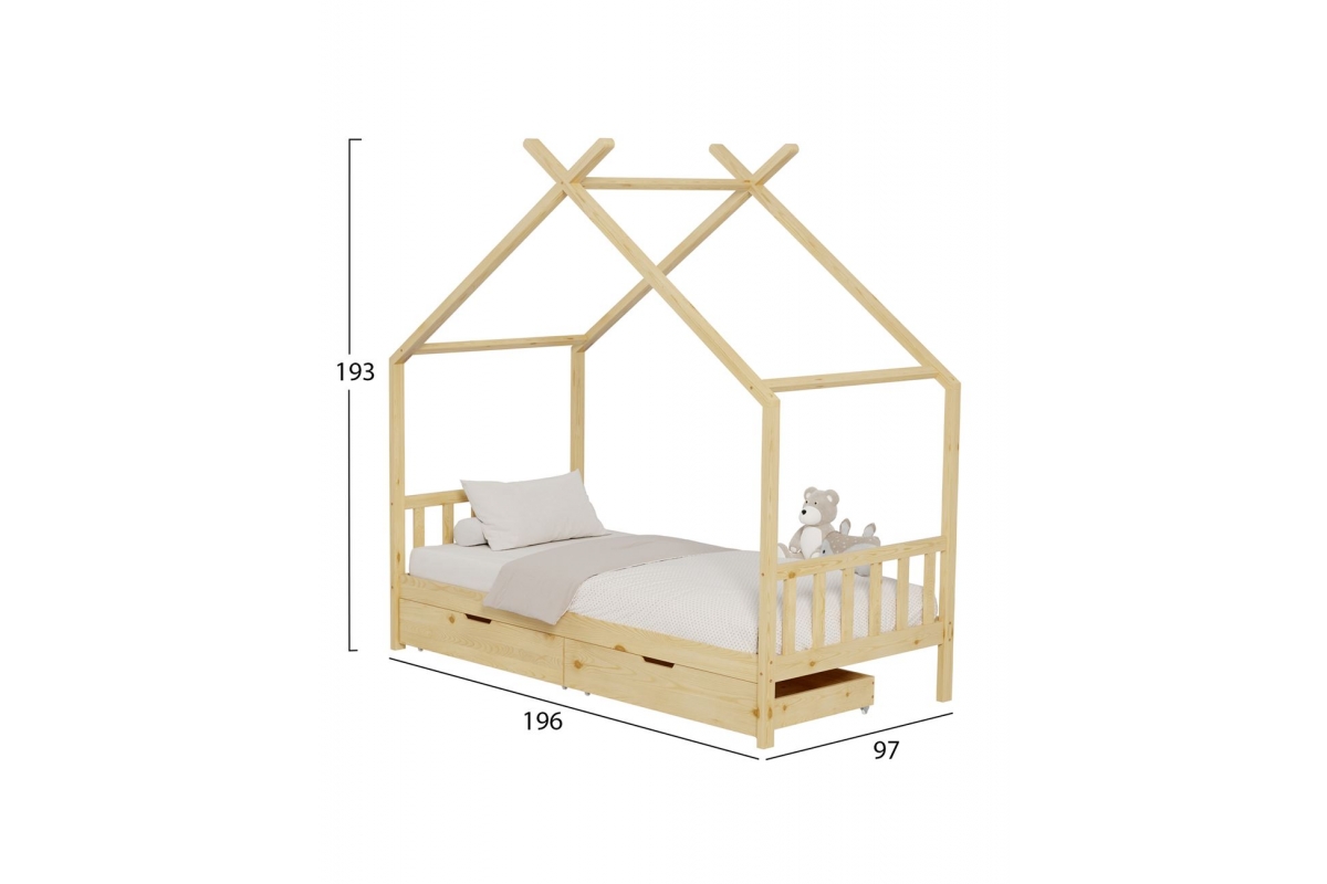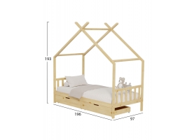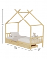 Το κρεβάτι CLARA είναι τύπου Montessori, δηλαδή έχει σχεδιαστεί με βάση το σύστημα Montessori, που υποστηρίζει ότι τα παιδιά μαθαίνουν καλύτερα όταν επιλέγουν τις δραστηριότητες τους. Το χαμηλό ύψος, χωρίς πόδια, διευκολύνει τα παιδιά να εξερευνήσουν την αυτονομία τους και να ανεβοκατεβαίνουν ελεύθερα. Είναι για μονό στρώμα 90x190 εκ, και είναι μια ποιοτική, μοντέρνα και ασφαλής επιλογή για το παιδικό δωμάτιο. Είναι ξύλινο σε ΦΥΣΙΚΟ χρώμα, με μη τοξικό βερνίκι νερού, ιδανικό για παιδιά. Το στρώμα μπαίνει σε τάβλες από κόντρα πλακέ. Το κρεβάτι έχει σχήμα σπιτιού, προσφέροντας μια ευχάριστη, «ζεστή» και παιχνιδιάρικηεμφάνιση.Επιπλέον,είναιπρακτικό,με2 μεγάλα συρτάρια από κάτω για αποθήκευση.