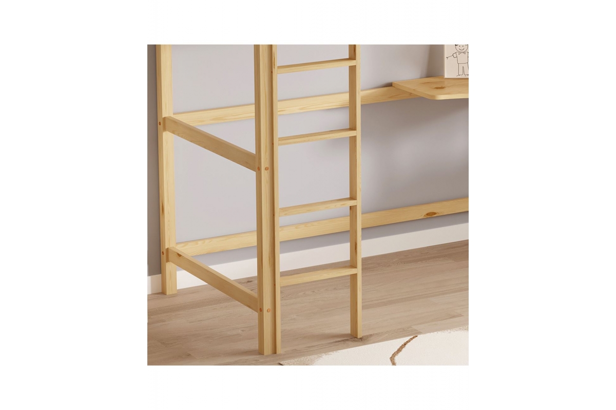 Το FOCUS δέχεται στρώμα 90×200 εκ. Διατίθεται με τρεις επιλογές, με κάθετη σκάλα, με κάθετη σκάλα & Γραφείο. Είναι ιδανικό για μεγαλύτερα παιδιά που θέλουν περισσότερο χώρο στο δάπεδο στο δωμάτιο. Κάτω από το κρεβάτι υπάρχει πολύς επιπλέον χώρος δαπέδου που σας επιτρέπει να δημιουργήσετε χώρο εργασίας, χώρος αποθήκευσης ή μια σπηλιά για να παίξετε. Η σκάλα μπορεί να τοποθετηθεί είτε στην αριστερή είτε στη δεξιά πλευρά του κρεβατιού. Δέχεται μέγιστο βάρος 100 κιλα. Κατασκευάζεται από ξύλο πεύκου και η βαφή του είναι με μη τοξική βαφή με βάση το νερό. Διαθέτει πιστοποίηση από το Nordic Swan Ecolabel. Μετατρέπεται σε μονό κρεβάτι junior 90×200εκ.