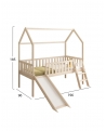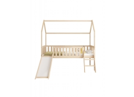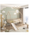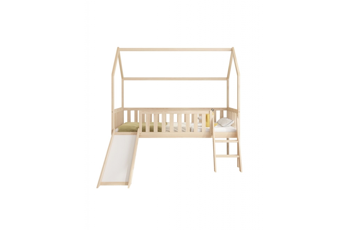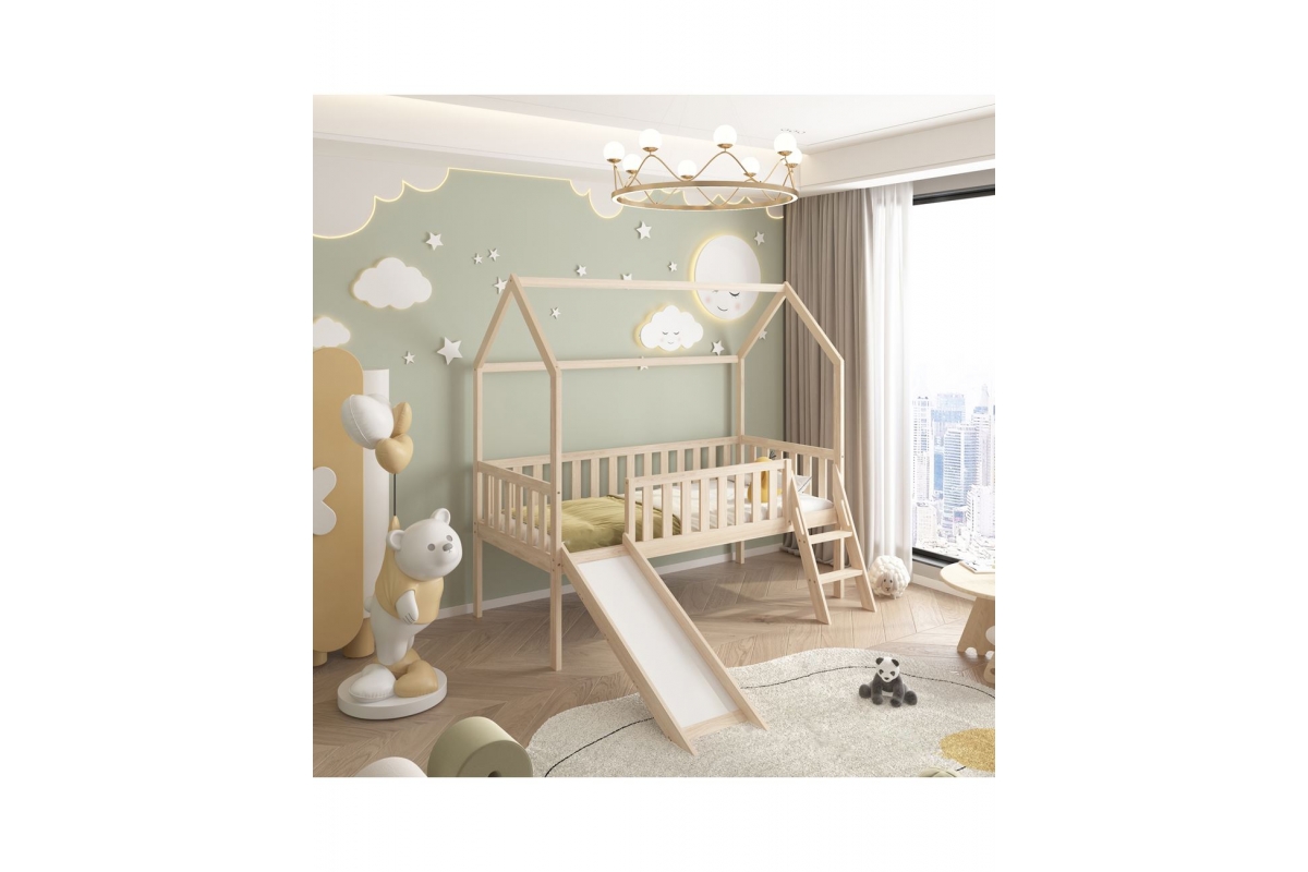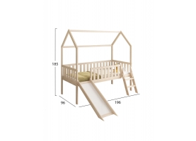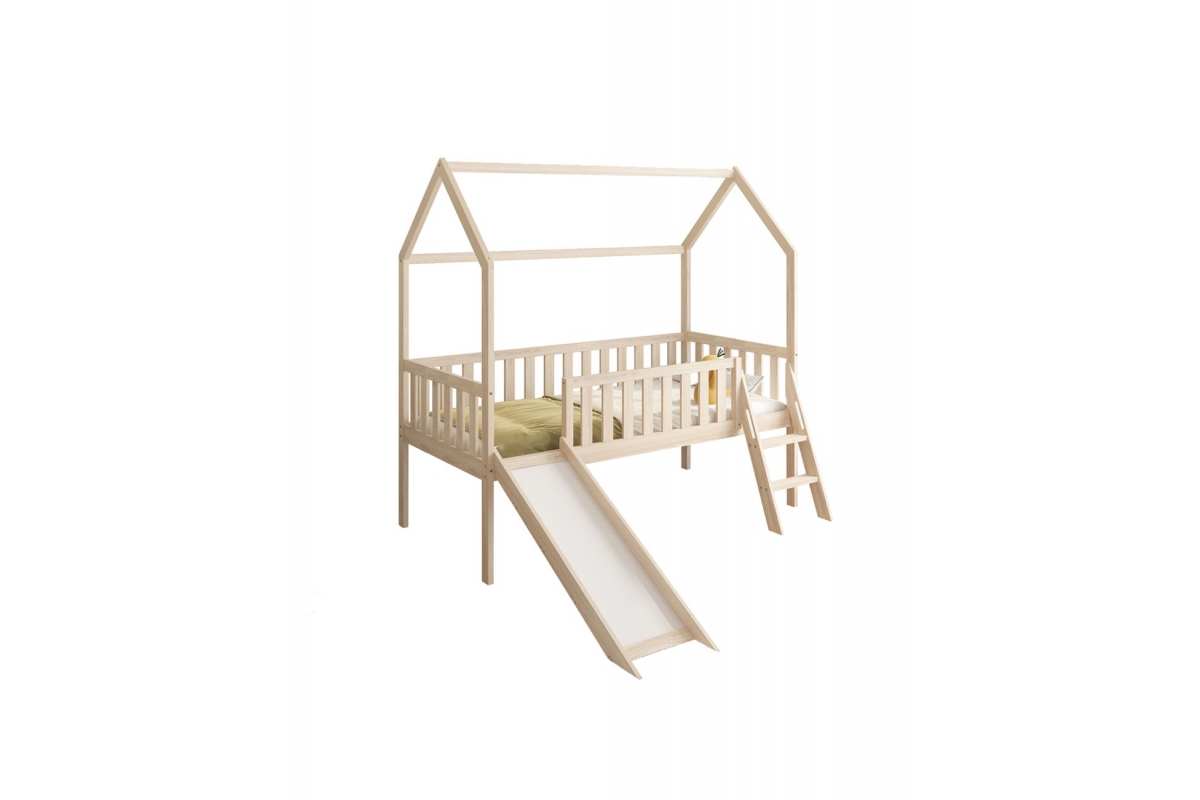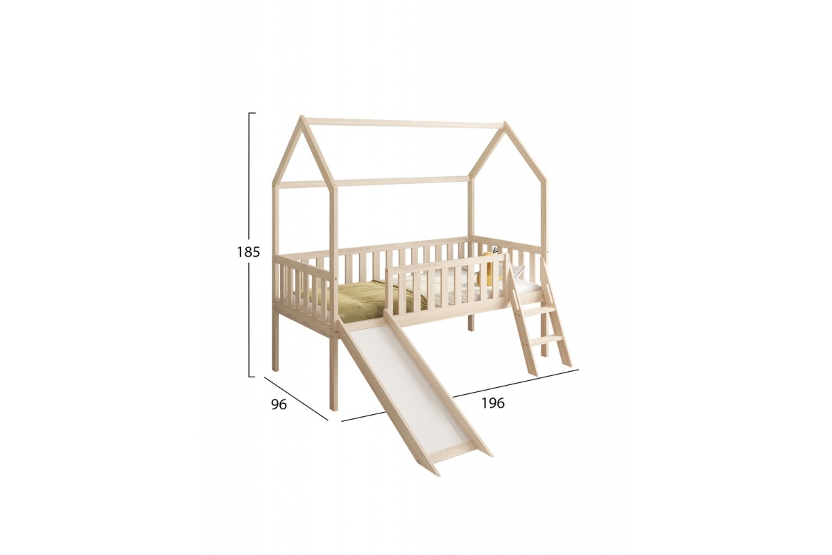 To παιδικό κρεβάτι PLAYGROUND είναι τύπου Montessori, που σημαίνει ότι είναι σχεδιασμένο σύμφωνα με το εκπαιδευτικό σύστημα Montessori, σύμφωνα με το οποίο τα παιδιά μαθαίνουν καλύτερα όταν επιλέγουν να κάνουν αυτό που επιλέγουν. Με διαστάσεις 90x190 εκ., το συγκεκριμένο στρώμα αποτελεί μια ποιοτική, μοντέρνα και ασφαλή επιλογή για παιδικά δωμάτια, καθώς διαθέτει ξύλινα κάγκελα περιμετρικά. Είναι λευκό ξύλο, επικαλυμμένο με αβλαβές βερνίκι με βάση το νερό, μη τοξικό και ιδανικό για παιδιά. Το στρώμα τοποθετείται σε σανίδα από κόντρα πλακέ. Ολόκληρο το κρεβάτι είναι ανυψωμένο και έχει σχήμα σπιτιού, αλλά αυτό που λατρεύουν τα παιδιά είναι ότι έχει μια τσουλήθρα που επιτρέπει ατελείωτο παιχνίδι και διασκέδαση. Η πρόσβαση στο κρεβάτι γίνεται μέσω μιας μικρής σκάλας, η οποία λειτουργεί και ως τσουλήθρα.