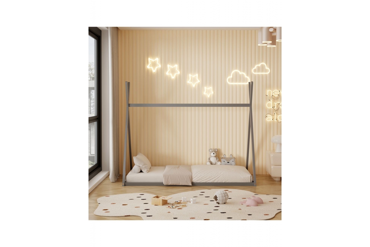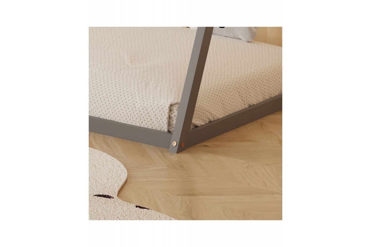 Σας παρουσιάζουμε το "SIOU", ένα νέο παιδικό κρεβάτι σε στυλ Montessori, που σημαίνει ότι είναι σχεδιασμένο σύμφωνα με το εκπαιδευτικό σύστημα Montessori, σύμφωνα με το οποίο τα παιδιά μαθαίνουν καλύτερα όταν επιλέγουν να κάνουν αυτό που κάνουν. Το χαμηλό ύψος του κρεβατιού χωρίς πόδια τους βοηθά να εξερευνήσουν την αυτονομία τους και να μπαίνουν και να σηκώνονται ελεύθερα ανά πάσα στιγμή. Το μονό στρώμα έχει διαστάσεις 90x190 cm και είναι μια υψηλής ποιότητας, μοντέρνα και ασφαλής επιλογή για παιδικά δωμάτια. Είναι γκρι ξύλο και επικαλυμμένο με ένα αβλαβές βερνίκι με βάση το νερό που είναι μη τοξικό και ιδανικό για παιδιά. Το στρώμα τοποθετείται απευθείας σε μια σανίδα από κόντρα πλακέ. Το κρεβάτι είναι σε σχήμα σκηνής και φέρνει μια χαρούμενη, «ζεστή» και παιχνιδιάρικη όψη σε κάθε παιδικό δωμάτιο.