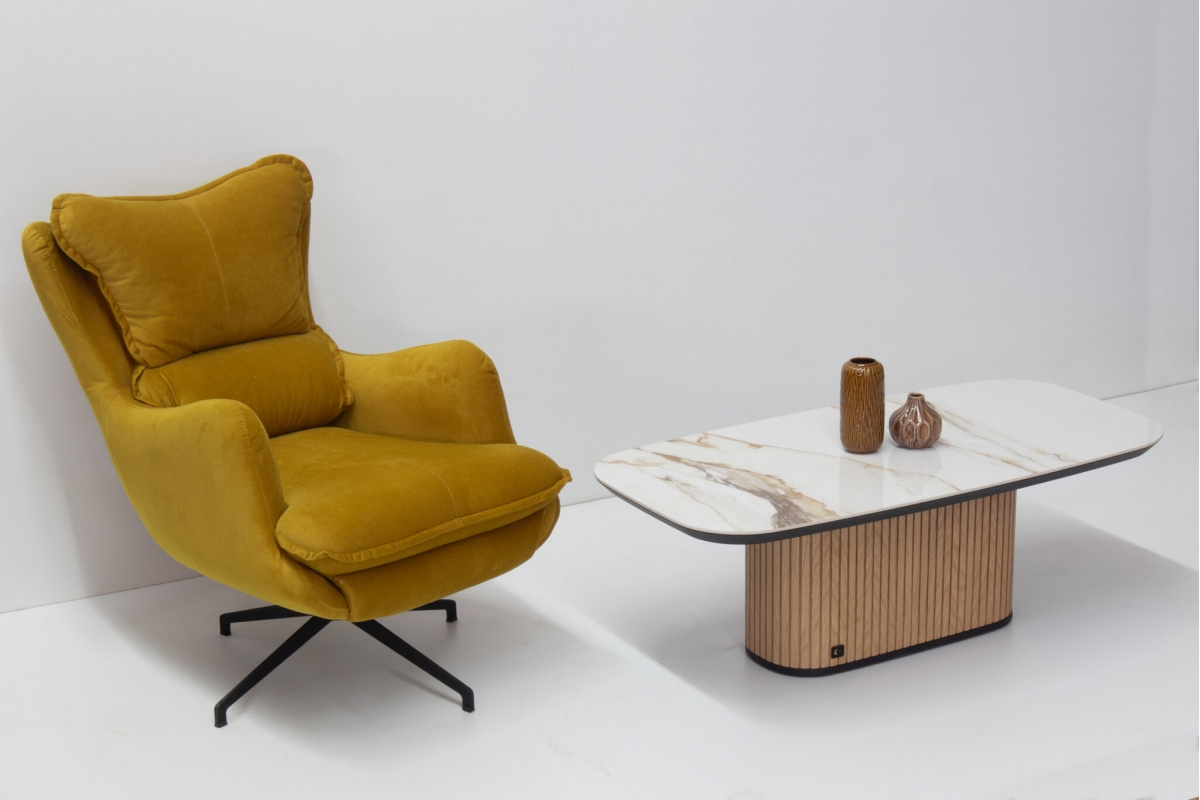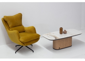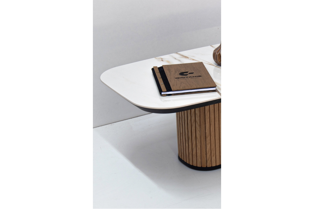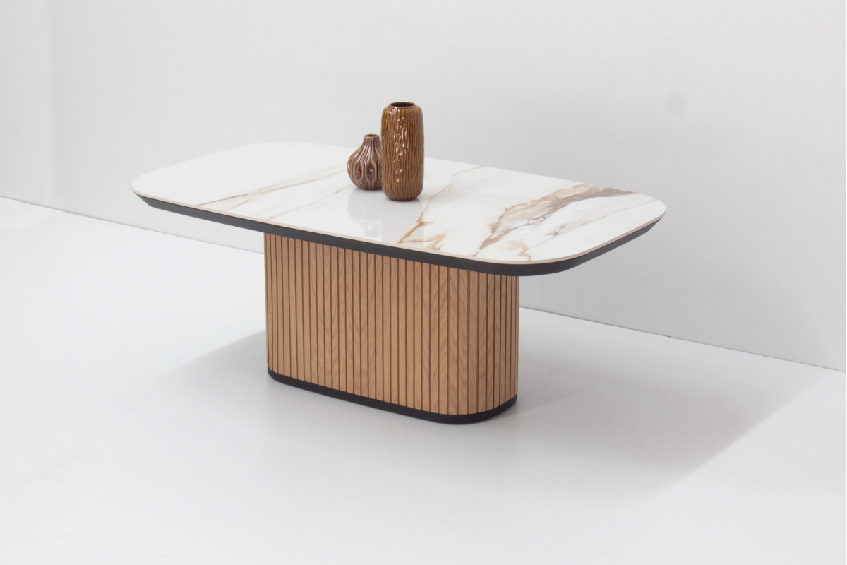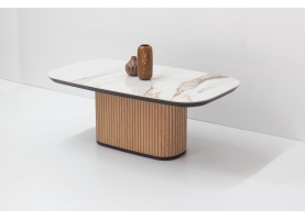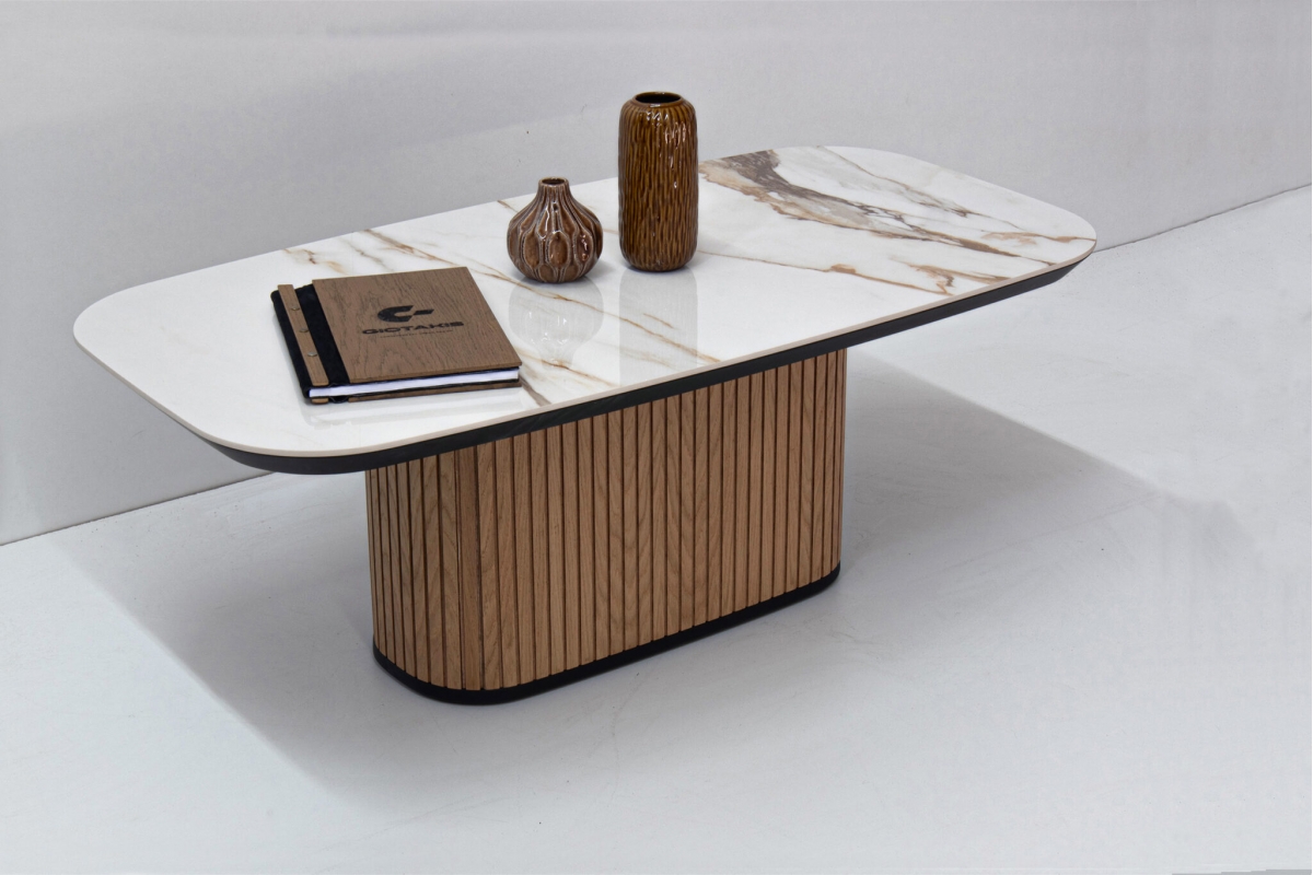 Παρουσιάζουμε το κομψο μας τραπεζάκι, με κεραμική επιφάνεια και καμπυλωτή ξύλινη βάση. Αυτο το κομματι συνδυάζει μοντέρνο σχεδιασμό με δυσικά στοιχεία,καθιστώντας το ιδανική προσθήκη σε κάθε χώρο. Ιδανικό για διακοσμητικά αντικείμενα ή για να απολαμβάνετε τον καφέ σας, βελτιώνει τη