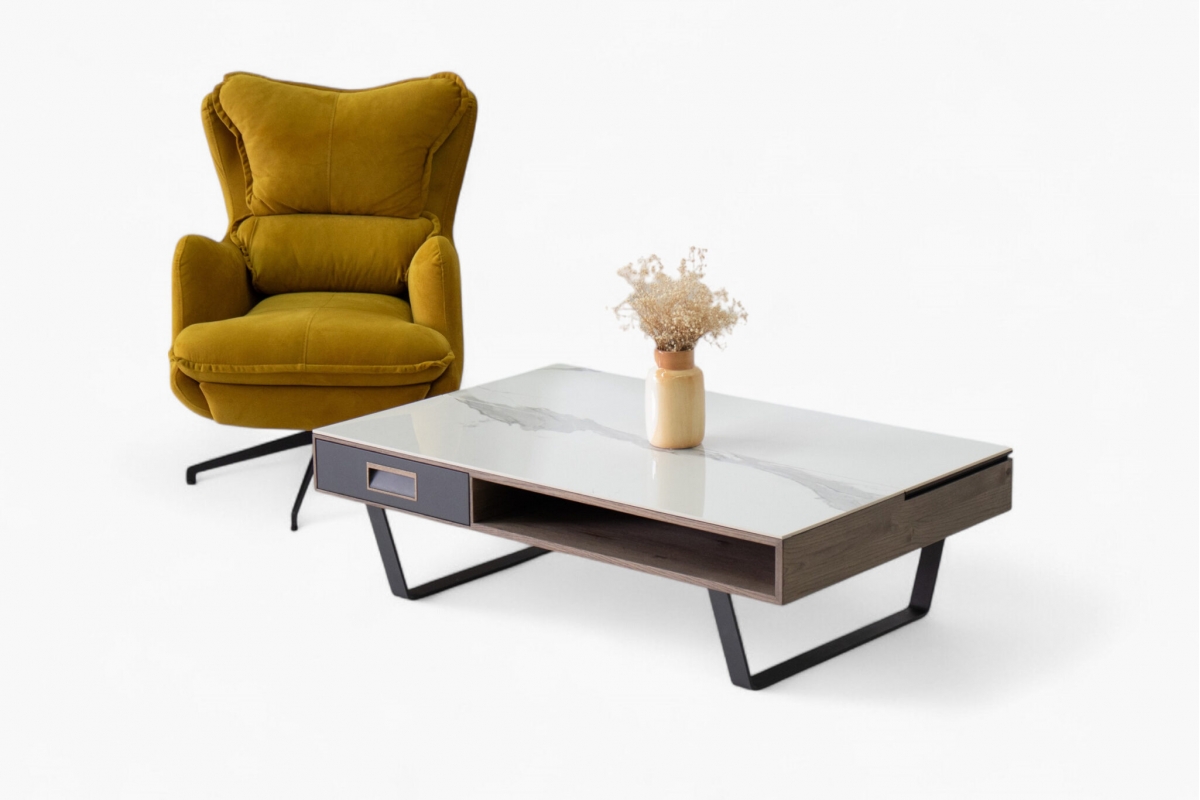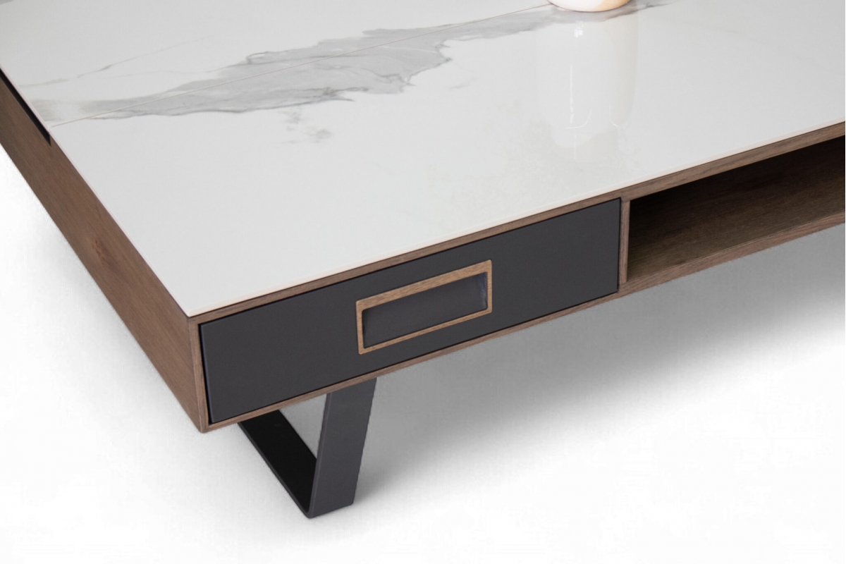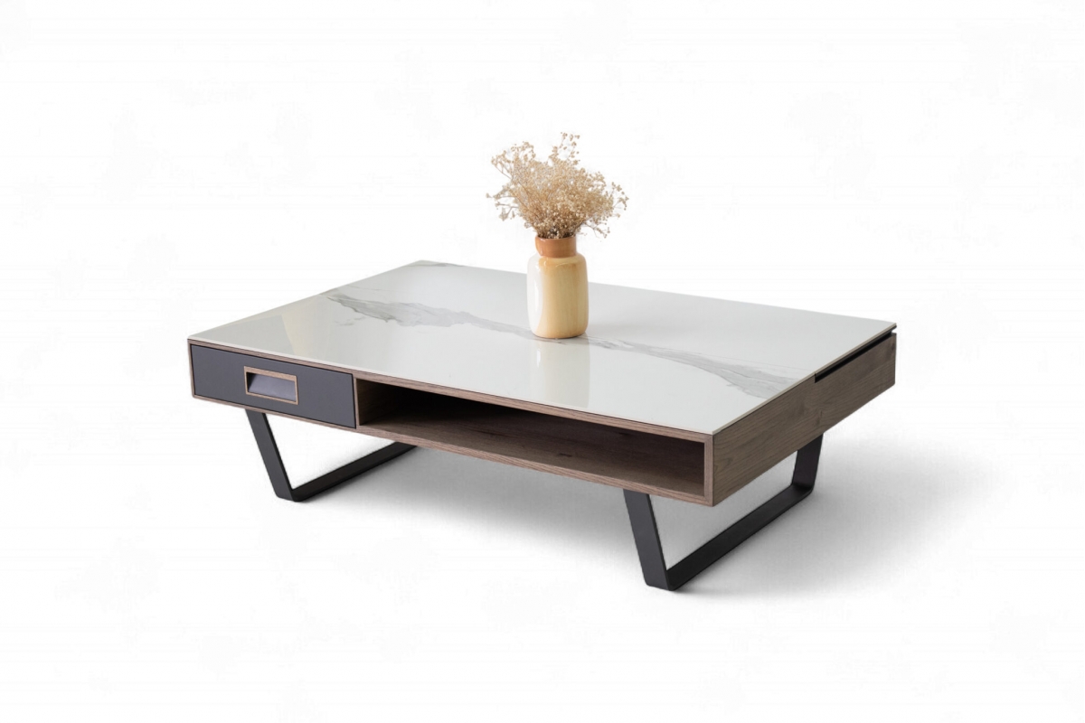 Η χρηστικότητα και το μοναδικό design μπαίνουν σε πρώτο πλάνο σε αυτό το μοναδικό τραπεζάκι σαλονιού το οποίο προορίζεται για να ικανοποιήσει όσους έχουν υψηλές απαιτήσεις από τα έπιπλά τους. Διαθέτει έναν μεγάλο σερβιτόρο κατά μήκος, ένα μεγάλο ράφι και ένα συρτάρι προσφέροντας εργονομία και καλύπτοντας κάθε σύγχρονη ανάγκη..