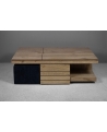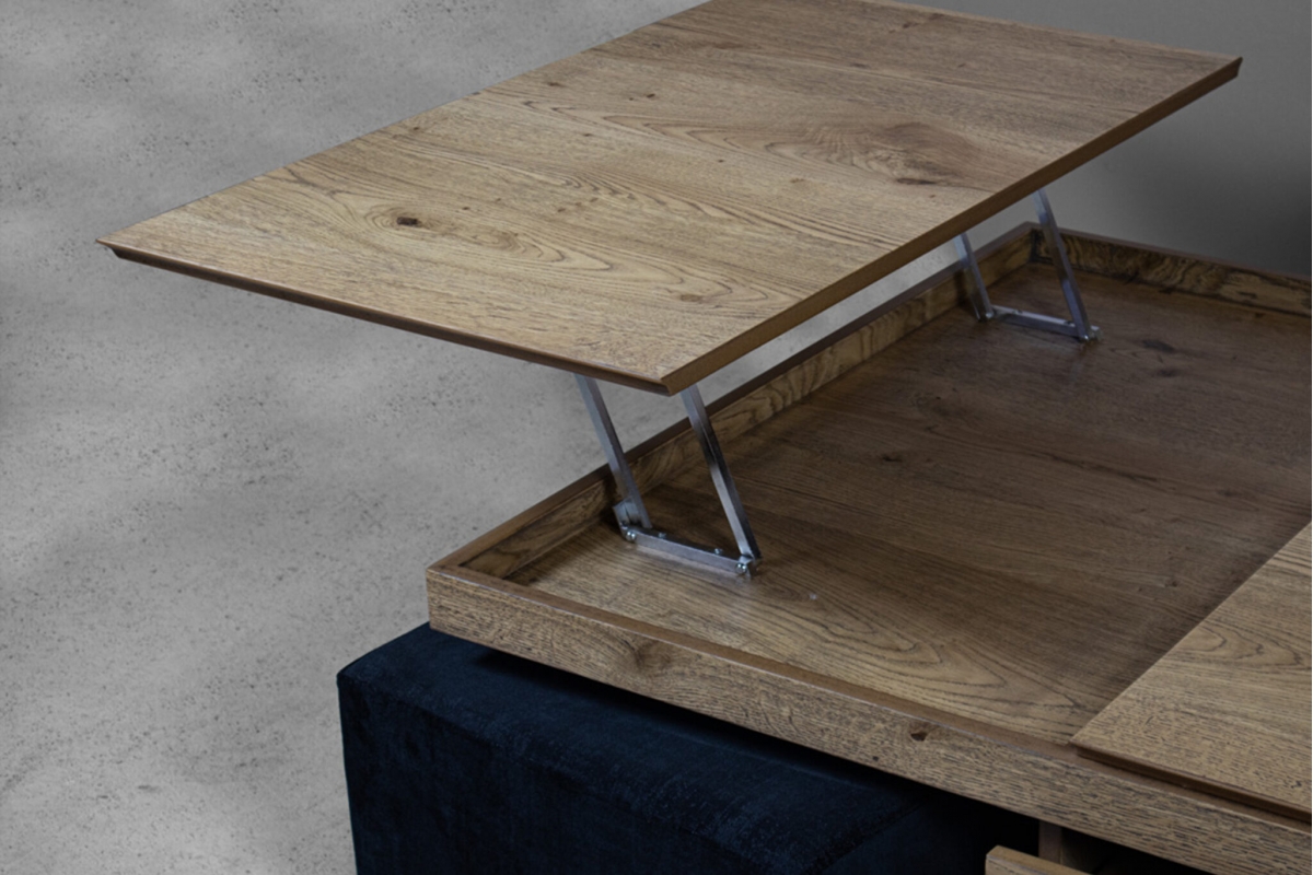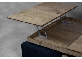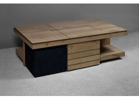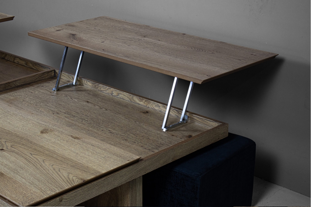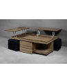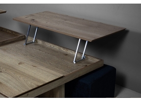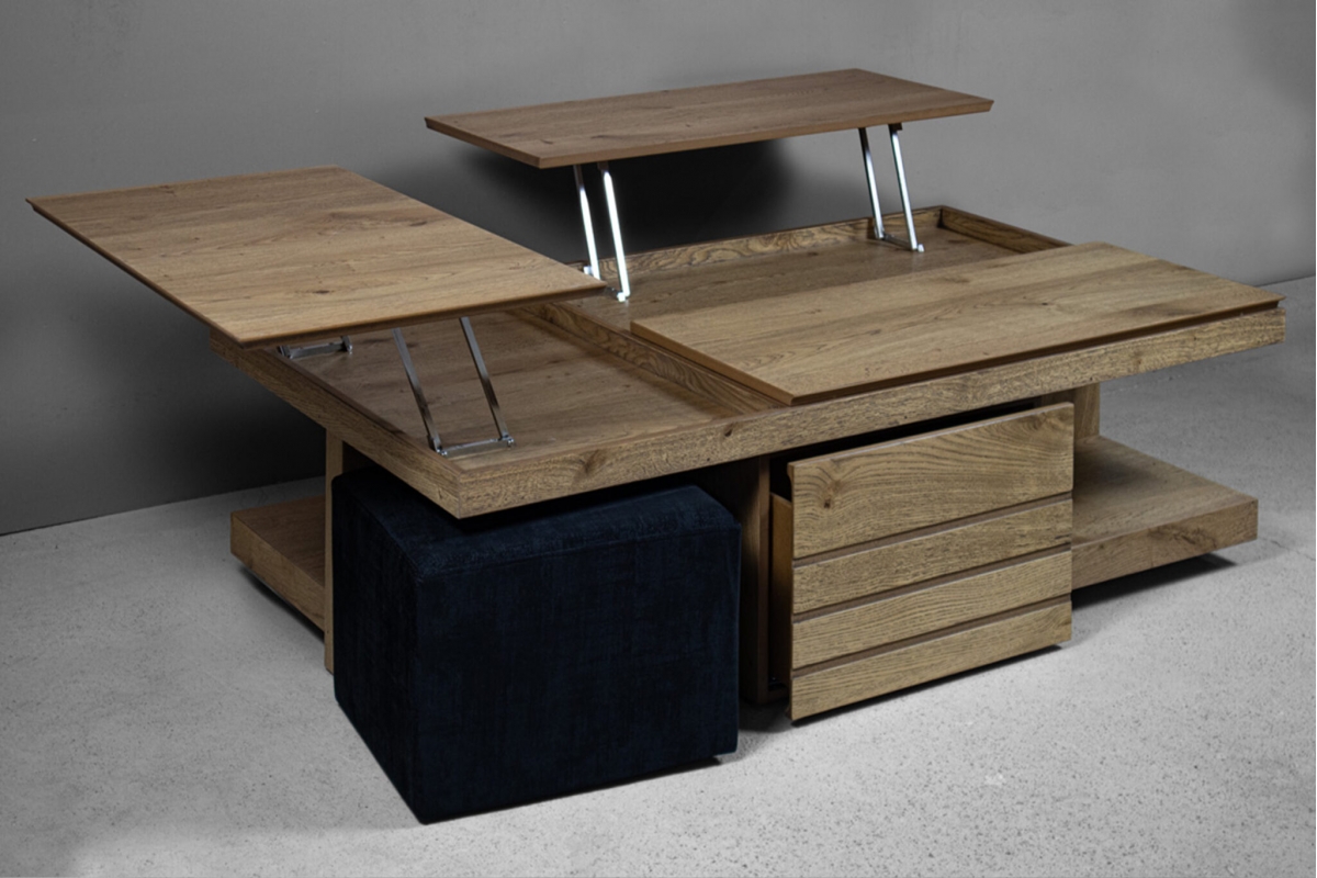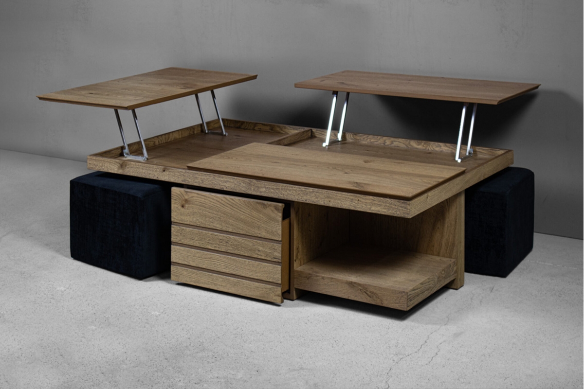 Το ξύλινο τραπεζάκι σαλονιού με τα… «χίλια πρόσωπα»! Πρόκειται για ένα τραπεζάκι σαλονιού για όσους αγαπάνε την καλή παρέα και περνάνε πολλές ώρες στο σαλόνι τους. Ο πολυμορφικός χαρακτήρας του με τους 2 σερβιτόρους, το συρτάρι κάβας αλλά και τα 2 πουφ που το συνοδεύουν το καθιστούν μία ολοκληρωμένη λύση για το σύγχρονο σαλόνι.