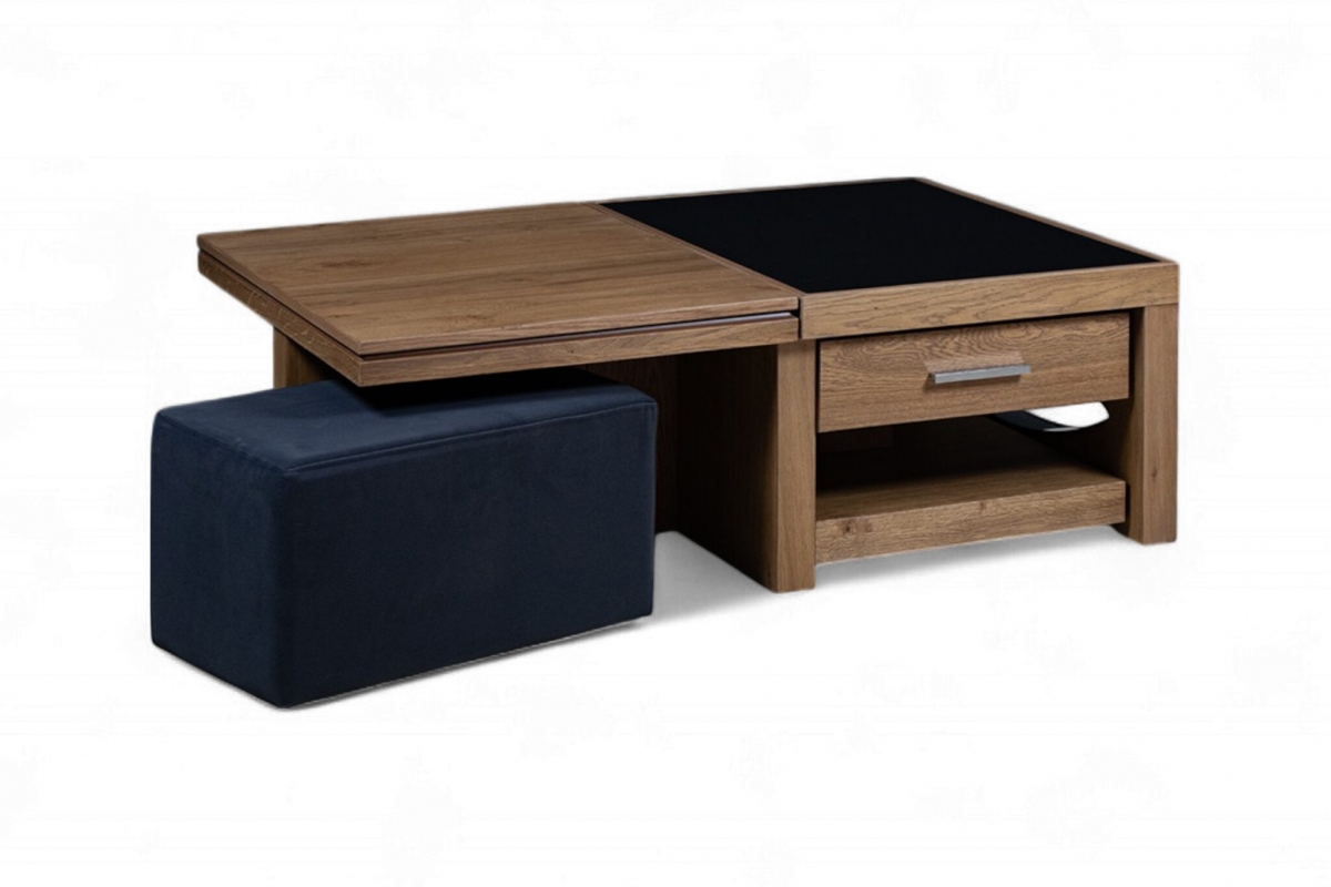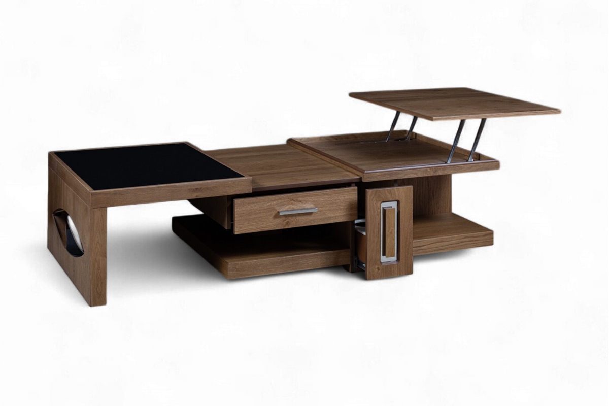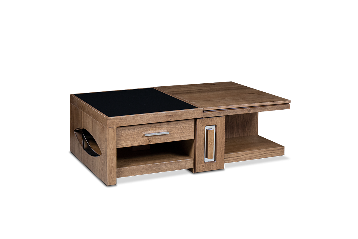 Αν η πολυμορφικότητα ήταν… τραπεζάκι σαλονιού! Το συγκεκριμένο κομμάτι εντυπωσιάζει με τις αμέτρητες δυνατότητές του οι οποίες όμως δεν είναι εμπόδιο στον εντυπωσιακό σχεδιασμό του. Διαθέτει συρόμενο καπάκι, ένα μεγάλο σερβιτόρο, συρτάρι κάβας, δύο επιπλέον συρτάρια αποθήκευσης και 1 πουφ για να φιλοξενήσουν τους επισκέπτες.