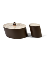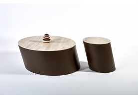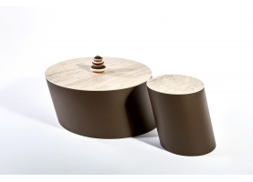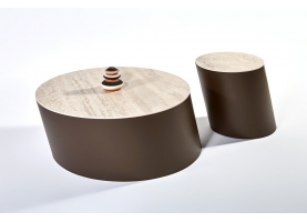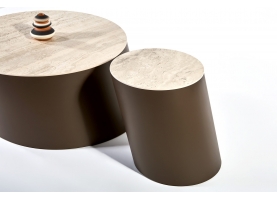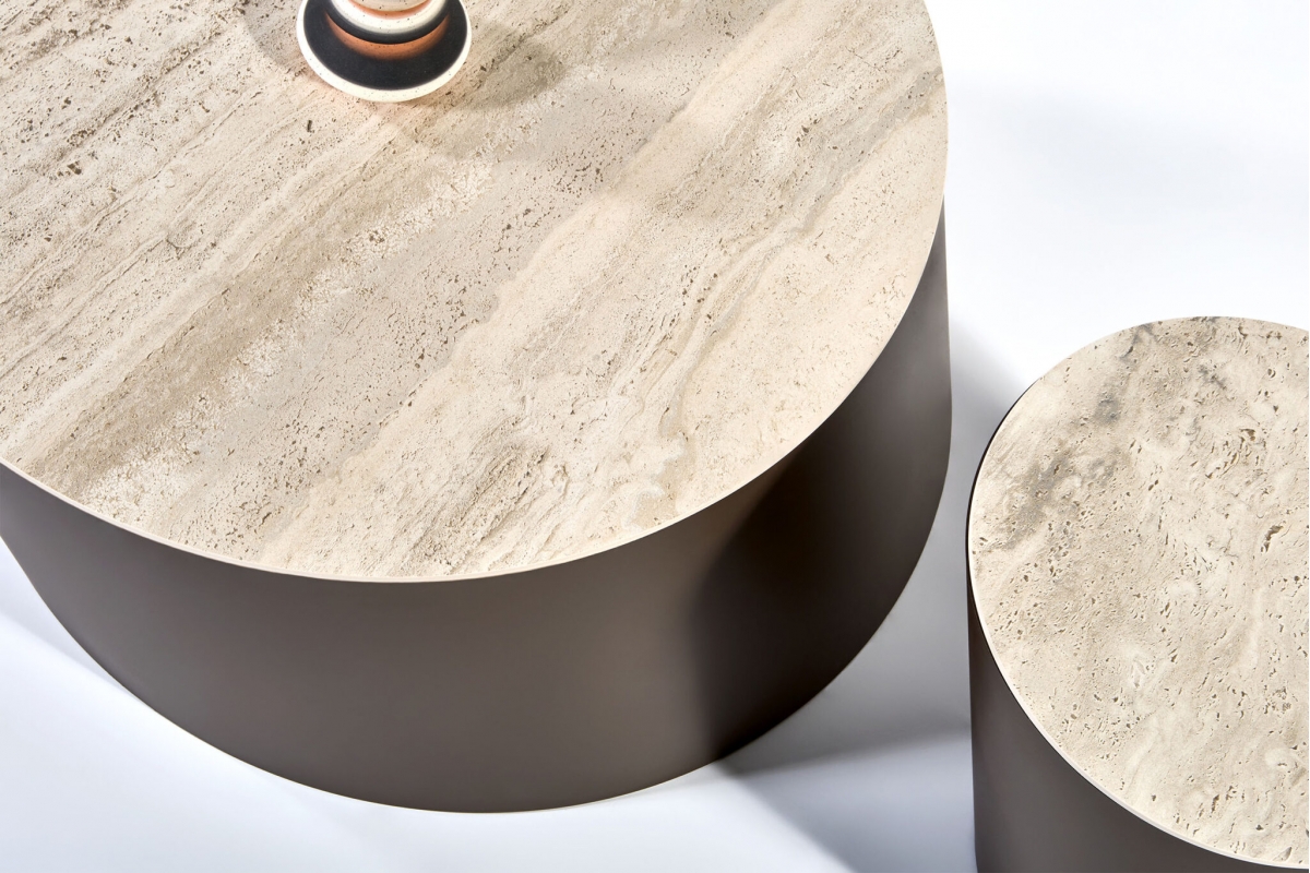 Αυτά τα κομψά τραπεζάκια συνδυάζουν μια στιβαρή μεταλλική βάση με κεραμική επιφάνεια υψηλής αισθητικής. Με λιτές γραμμές και διαχρονικό design, προσδίδουν μια μοντέρνα αλλά και ζεστή αίσθηση στον χώρο, ιδανικά για καθιστικό ή επαγγελματικό περιβάλλον.