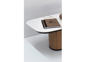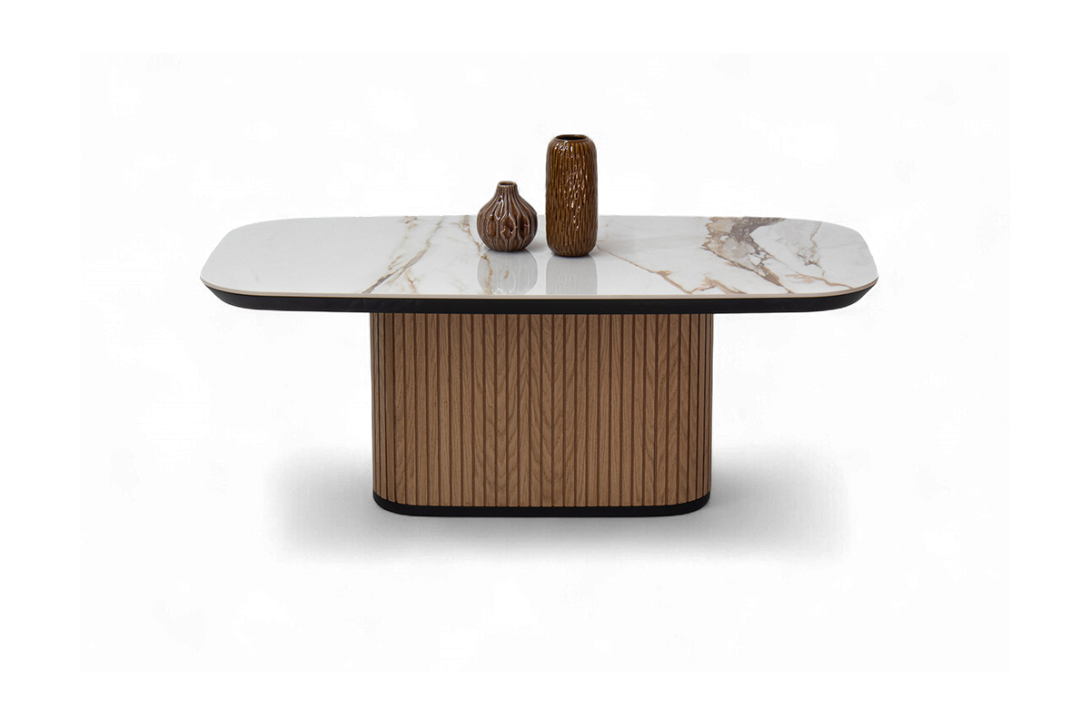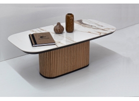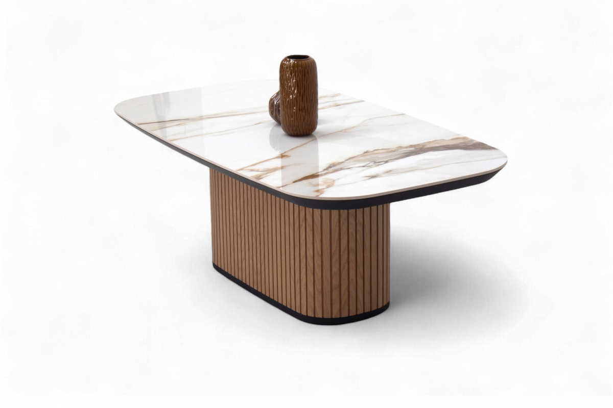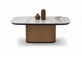 Παρουσιάζουμε το κομψο μας τραπεζάκι, με κεραμική επιφάνεια και καμπυλωτή ξύλινη βάση. Αυτο το κομματι συνδυάζει μοντέρνο σχεδιασμό με δυσικά στοιχεία,καθιστώντας το ιδανική προσθήκη σε κάθε χώρο. Ιδανικό για διακοσμητικά αντικείμενα ή για να απολαμβάνετε τον καφέ σας, βελτιώνει τη