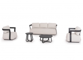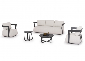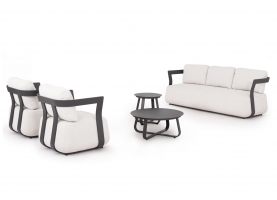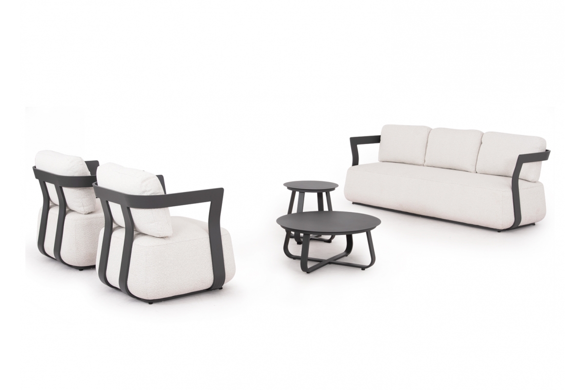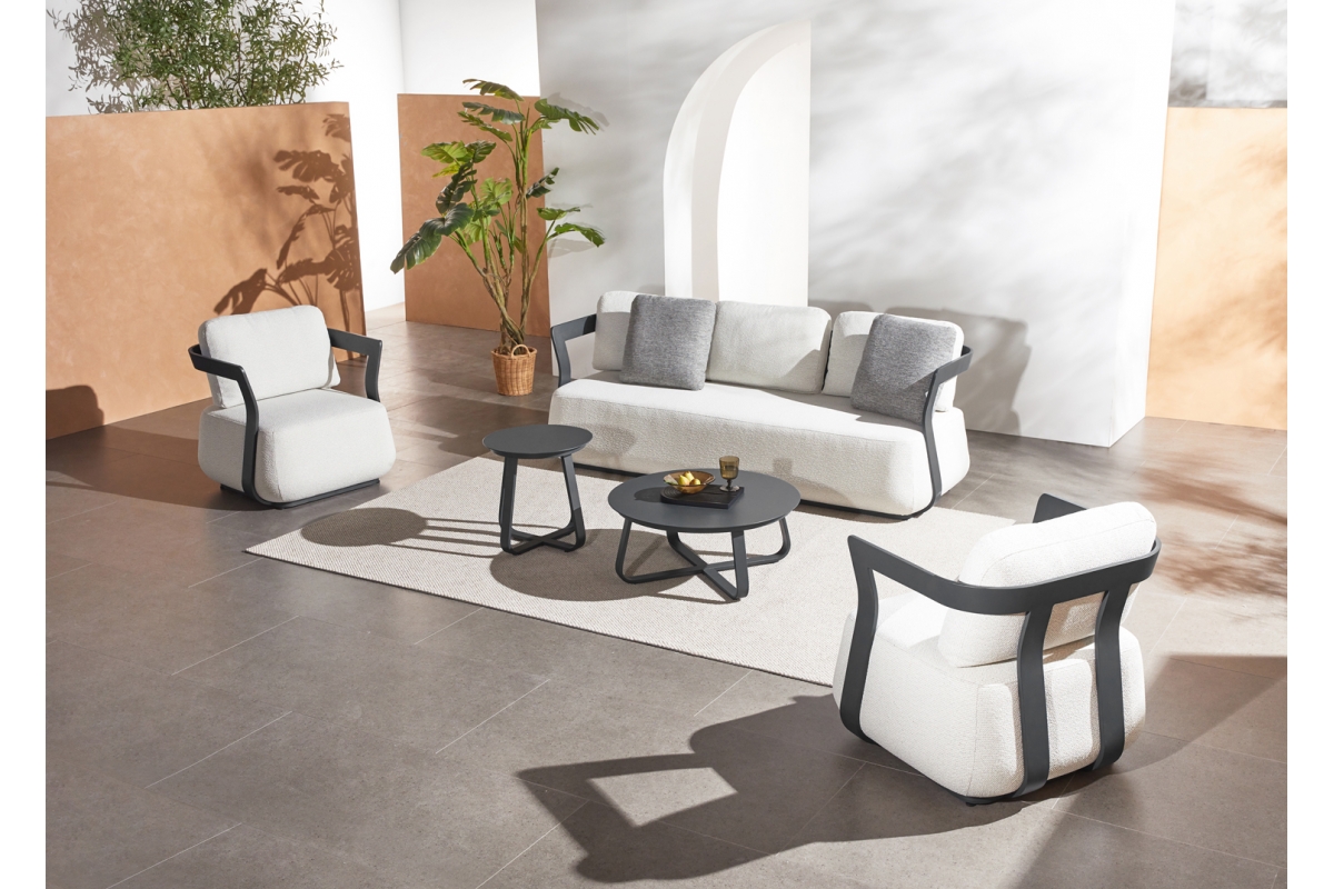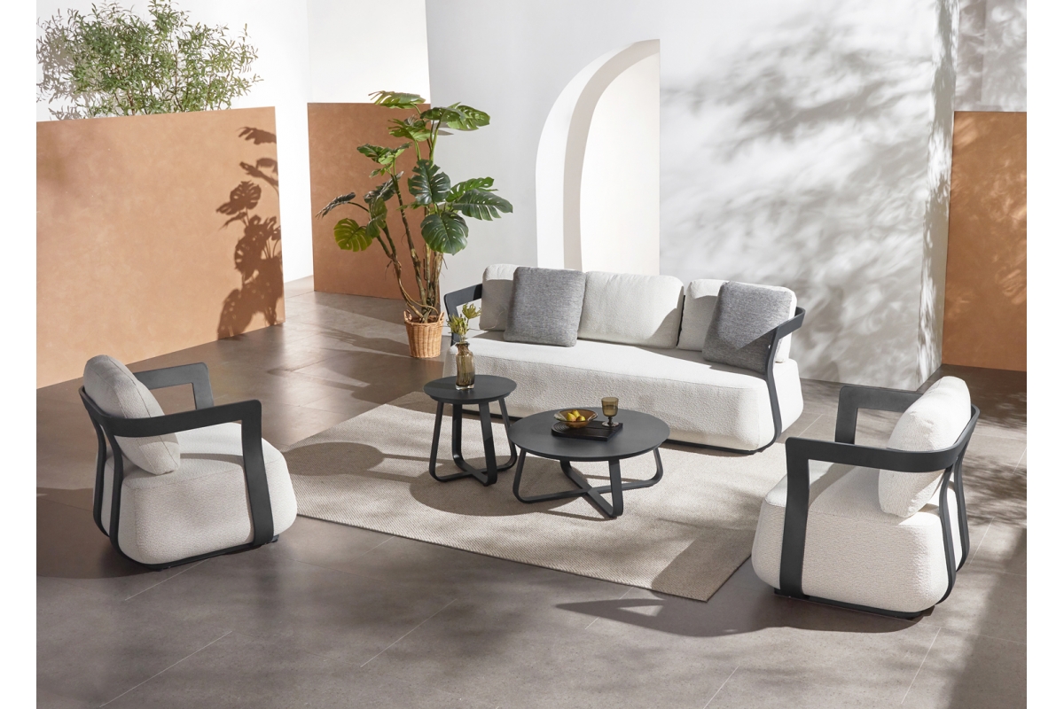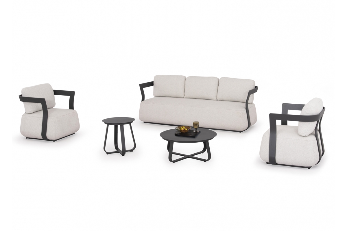 To σετ σαλόνι εξωτερικού χώρου 5τμχ SERGIO, δημιουργεί νέα δεδομένα στην κατηγορία του. Αποτελείται από έναν 3-θέσιο καναπέ, δύο τραπεζάκια διαφορετικών μεγεθών, και 2 αναπαυτικές πολυθρόνες.
