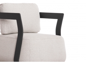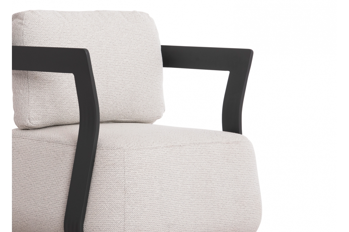 Ο σκελετός είναι από αλουμίνιο βαμμένο με ηλεκτροστατική βαφή. Το αλουμίνιο είναι ένα «πράσινο» υλικό το οποίο μπορεί να ανακυκλωθεί απεριόριστα, διατηρώντας τα χαρακτηριστικά του χωρίς καμία ποιοτική υποβάθμιση. Από την φύση του το αλουμίνιο είναι ανθεκτικό στην διάβρωση. Τα καλύμματα στα μαξιλάρια πλάτης είναι κατασκευασμένα από PP COTTON. Το PP Cotton, γνωστό και ως Cotton Polyfill, είναι ένας τύπος συνθετικής ίνας που προέρχεται από το πολυπροπυλένιο (PP). Χρησιμοποιείται ευρέως για την κατασκευή προϊόντων όπως μαξιλάρια, κουβέρτες, στρώματα και ρούχα. Αυτό το ύφασμα διακρίνεται για την αντοχή του στο νερό, το χαμηλό βάρος του και το γρήγορο στέγνωμα. Τα καθίσματα έχουν γέμισμα με Quick Dry Foam. Ο αφρός Quick Dry έχει σχεδιαστεί ειδικά για χρήση σε εξωτερικούς χώρους. Σε αντίθεση με τον συμβατικό αφρό, ο αφρός Quick Dry στραγγίζει γρήγορα, χάρη στη δομή ανοιχτών κυψελών του, επιτρέποντας στα μαξιλάρια να στεγνώνουν γρήγορα ακόμα και μετά από πλήρες βρέξιμο, ενώ τον προστατεύουν από την ανάπτυξη μούχλας.