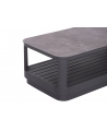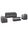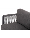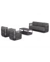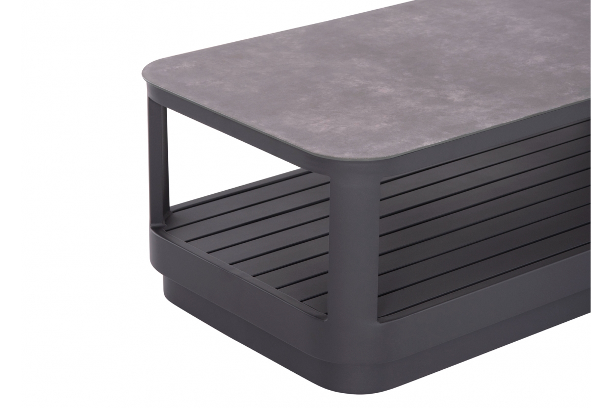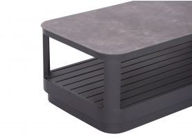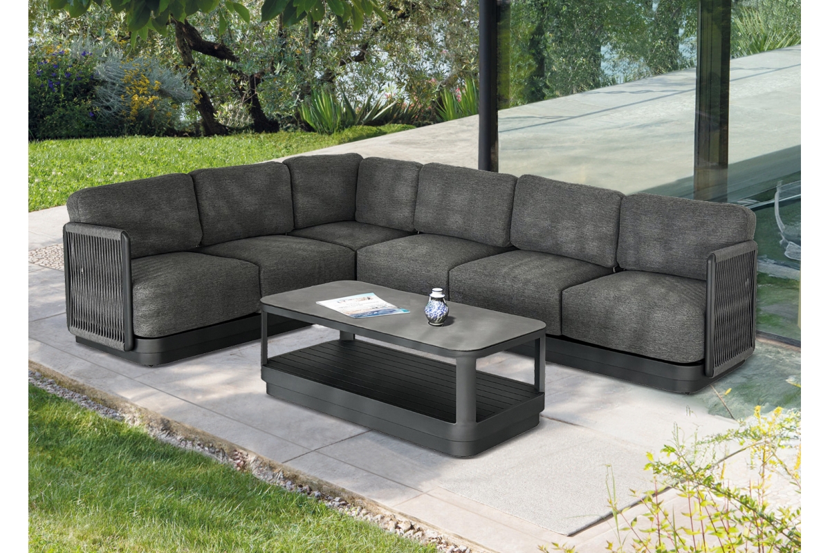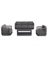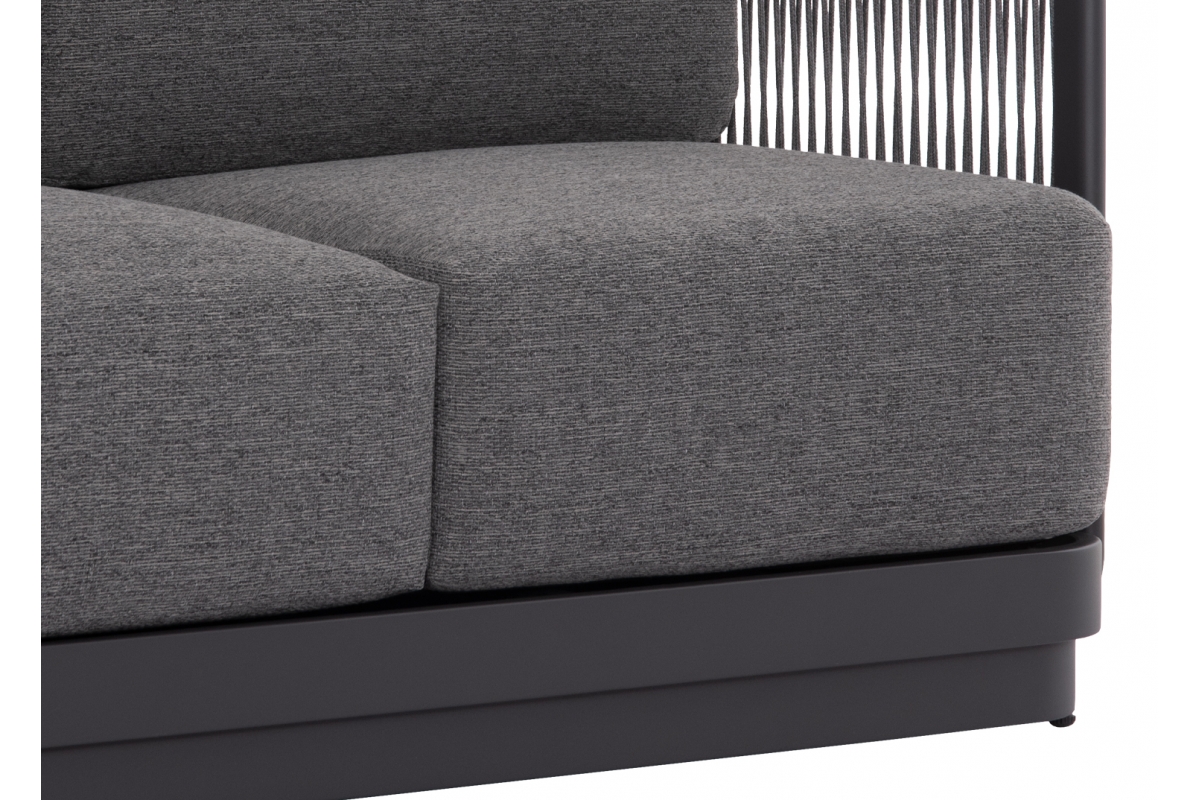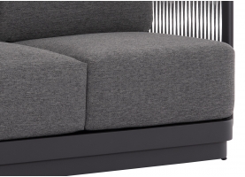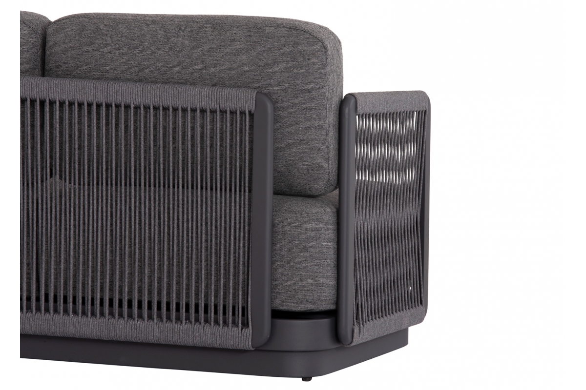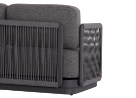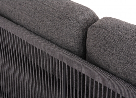 Ο σκελετός είναι από αλουμίνιο σε ΣΚΟΥΡΟ ΓΚΡΙ χρώμα με μαξιλάρια σε ίδιο χρώμα. Το πολυεστερικό ύφασμα, το σχοινί στα μπράτσα αλλά και η αλουμινένια επιφάνεια στο τραπεζάκι με την όψη πέτρας απογειώνουν ποιοτικά όλη την σύνθεση! Η αισθητική και το μοναδικό φινίρισμα κάθε σπιθαμής αυτού του σετ, θα σας κάνουν απλά να απολαμβάνετε την κάθε στιγμή!