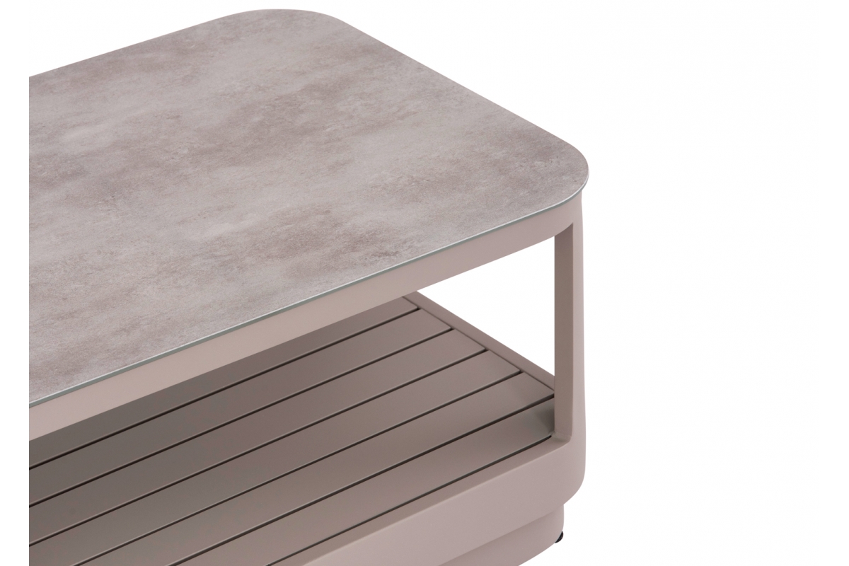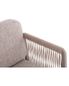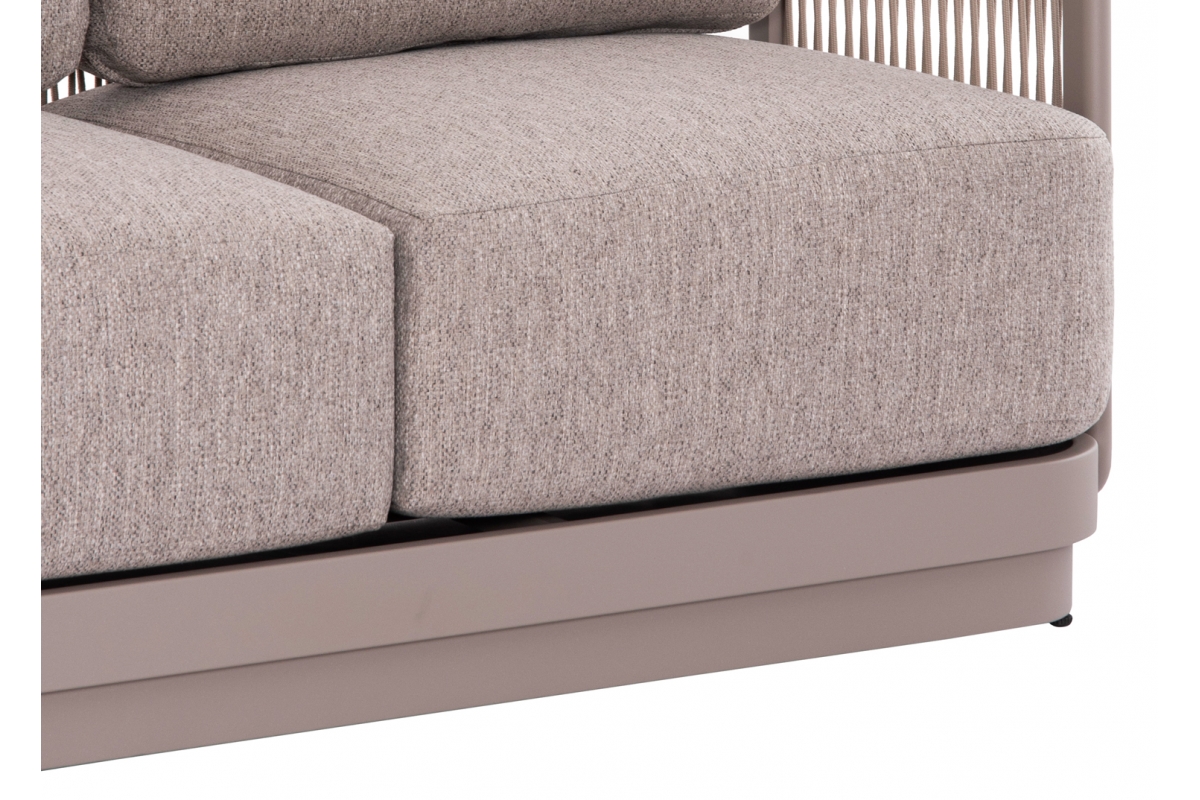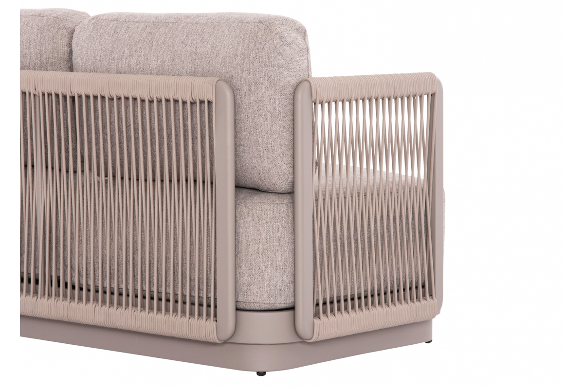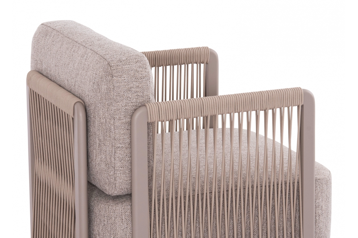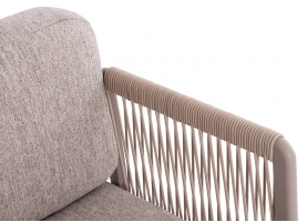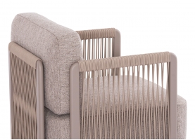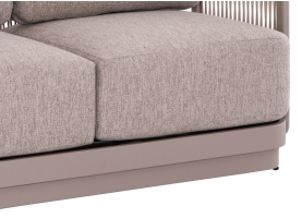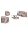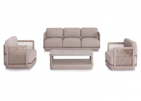 Ο σκελετός είναι από αλουμίνιο σε Ανοιχτό γκρι και Σαμπανί χρώμα με μαξιλάρια σε ίδιο χρώμα. Το πολυεστερικό ύφασμα, το σχοινί στα μπράτσα αλλά και η αλουμινένια επιφάνεια στο τραπεζάκι με την όψη πέτρας απογειώνουν ποιοτικά όλη την σύνθεση! Η αισθητική και το μοναδικό φινίρισμα κάθε σπιθαμής αυτού του σετ, θα σας κάνουν απλά να απολαμβάνετε την κάθε στιγμή!