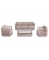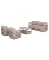 271x73x66-82Υ εκ. ΤΡΑΠΕΖΙ: Διαστάσεις: 116x55x13,5-41Υ εκ. Καλύμματα μαξιλαριών: Πολυεστερικό (Spun polyester) ύφασμα 300g ειδικό για εξωτερική χρήση (με φερμουάρ για εύκολη αφαίρεση)---Ανθεκτικότητα υφάσματος: 1000 ώρες- UV Protection Μαξιλάρια: Ελατήρια στο κέντρο-3εκ Πολυουρεθάνη επάνω, 7εκ κάτω---Πυκνότητα αφρού: 25D (5εκ) ΠΡΟΔΙΑΓΡΑΦΕΣ ΑΛΟΥΜΙΝΙΟΥ: Μπράτσα & Πλάτη: 40x25x1.2mm Εξωτερικός σκελετός καθίσματος: 70x20x1.2mm Σκελετός καθίσματος: 70x8x1.0mm Τραπεζάκι βάση: 70x20x1.2mm Πόδι: R50x20x1.2mm—Βαση: 95x10x1.0mm---Επάνω μέρος: 30x20x1.2mm
