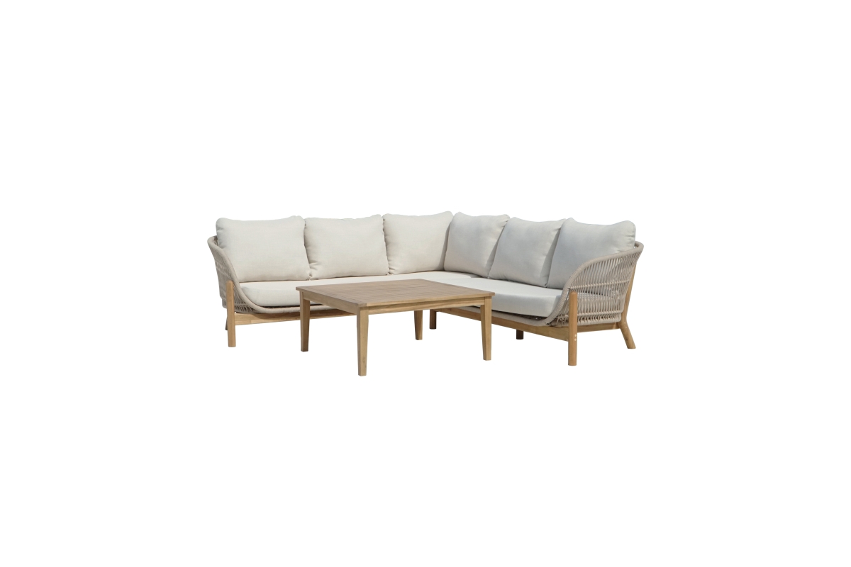Σας παρουσιάζουμε το νέο σετ σαλονιού εξωτερικού χώρου DORIAN corner σε διαμόρφωση γωνίας που αποτελείται από ένα τετράγωνο τραπεζάκι και 2 καναπέδες σε γωνία. Τα πόδια σε όλο το σετ είναι από ποιοτικό ξύλο ακακίας σε ΦΥΣΙΚΟ χρώμα, όπως και ολόκληρο το τραπεζάκι. Ο σκελετός των καθισμάτων είναι από αλουμίνιο επενδυμένος με σχοινί σε ανοιχτό ΜΠΕΖ χρώμα! Τα μαξιλάρια είναι επενδυμένα με πολυεστερικό ύφασμα σε ΜΠΕΖ χρώμα και διαθέτουν γέμισμα με μέτριας σκληρότητας αφρώδη υλικά για την μεγαλύτερη δυνατή άνεση, αλλά και φερμουάρ. Τι άλλο να ζητήσει κανείς για να αναβαθμίσει τον εξωτερικό χώρο του;