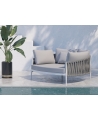 Καλύμματα μαξιλαριών: OLEFIN υδατοαπωθητικό (πολυεστερικό) ύφασμα ειδικό για εξωτερική χρήση (με φερμουάρ για εύκολη αφαίρεση) ΥΛΙΚΑ ΚΑΤΑΣΚΕΥΗΣ: Ο σκελετός είναι από αλουμίνιο βαμμένο με ηλεκτροστατική βαφή. Το αλουμίνιο είναι ένα «πράσινο» υλικό το οποίο μπορεί να ανακυκλωθεί απεριόριστα, διατηρώντας τα χαρακτηριστικά του χωρίς καμία ποιοτική υποβάθμιση. Από την φύση του το αλουμίνιο είναι ανθεκτικό στην διάβρωση. Η ίνα olefin είναι μια συνθετική ίνα κατασκευασμένη από διάφορα πλαστικά υλικά. Το ύφασμα που είναι κατασκευασμένο από αυτή την ίνα είναι ισχυρό, δεν ξεβάφει, και είναι ανθεκτικό στην μούχλα, την τριβή και το ηλιακό φως, επειδή διαθέτει προστασία από την υπεριώδη ακτινοβολία που προστίθεται στη διαδικασία κατασκευής. Τα πιο σημαντικά χαρακτηριστικά, ωστόσο, είναι ότι είναι αδιάβροχο και ανθεκτικό στους λεκέδες (αλέκιαστο).