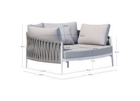 ΔΙΑΣΤΑΣΕΙΣ: 164x144x72-84Υ εκ. Διαστάσεις καθίσματος: 152x126 εκ. Διαστάσεις πλάτης: 122x29-40 εκ. Ύψος μπράτσου: 65 εκ. Ύψος καθίσματος: 41 εκ. Ύψος πoδιού: 22 εκ. Απόσταση ποδιών: 148-142,5x115,5-110 εκ.