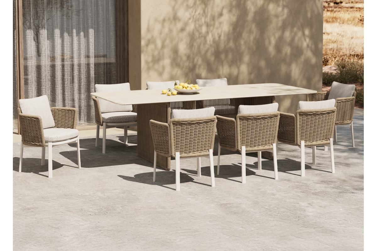 Σας παρουσιάζουμε ένα εντυπωσιακό τραπέζι εξωτερικού χώρου της σειράς MALIBU με ΜΠΕΖ twisted wicker και ΕΚΡΟΥ επιφάνεια από SINTERED STONE. Μια σειρά που, μαζί με άλλες, ανεβάζει τον πήχη της ποιότητας και της αισθητικής που προσφέρουμε σε εσάς, τόσο για το σπίτι, όσο και για κάθε ανάλογο επαγγελματικό χώρο!