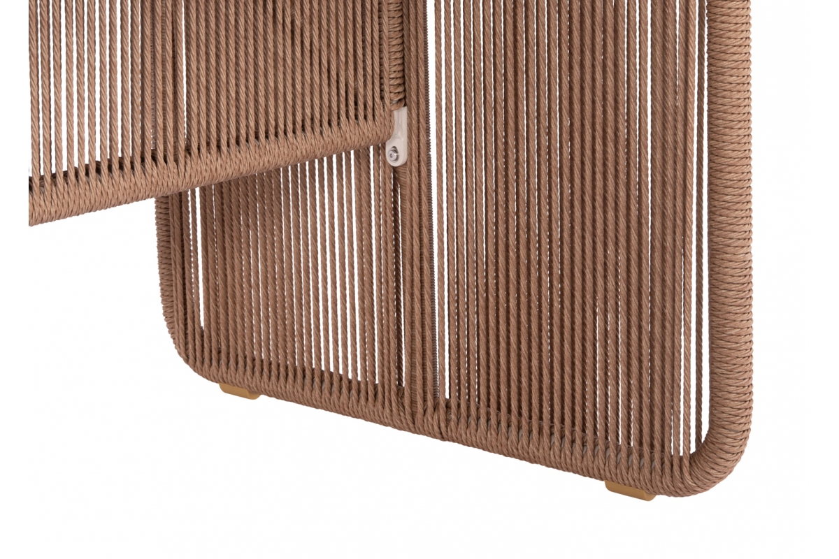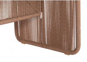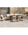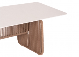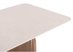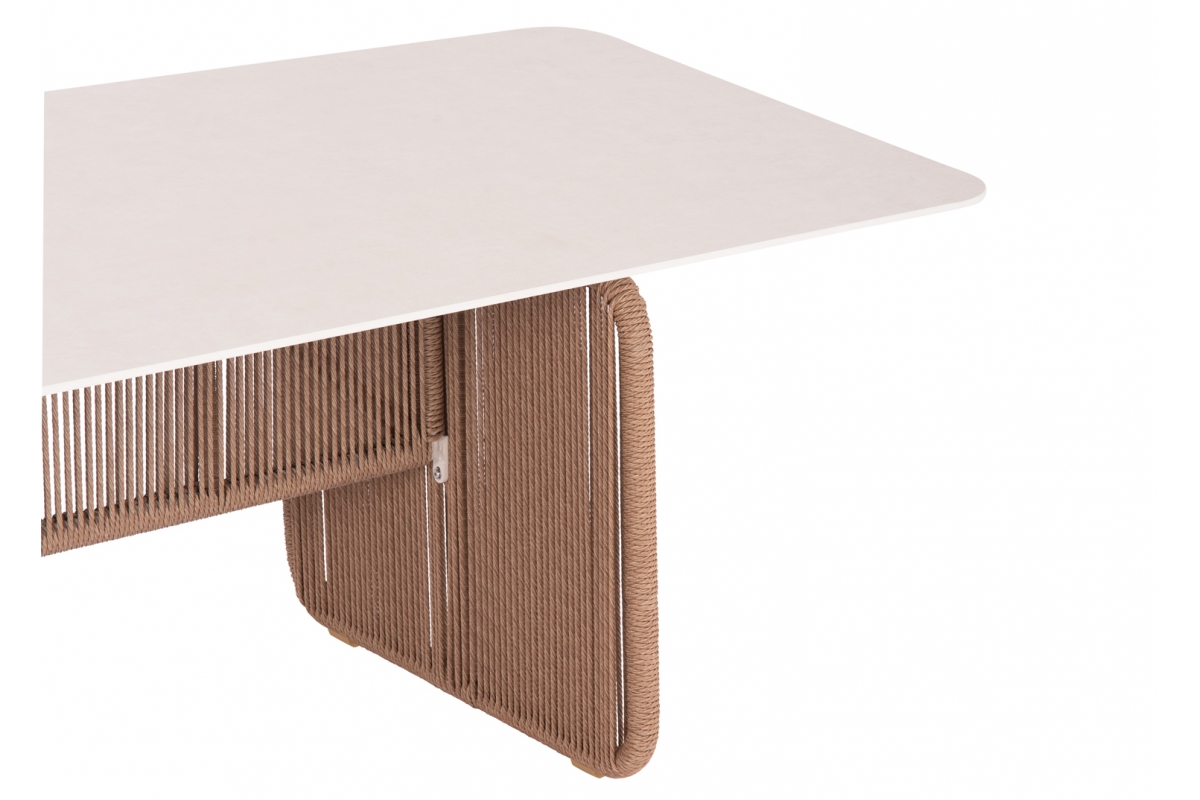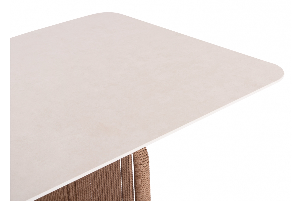 Διαστάσεις twisted wicker: 7mm ΥΛΙΚΑ ΚΑΤΑΣΚΕΥΗΣ: Ο σκελετός είναι από αλουμίνιο βαμμένο με ηλεκτροστατική βαφή, επενδυμένος με φυσικό σχοινί. Το αλουμίνιο είναι ένα «πράσινο» υλικό το οποίο μπορεί να ανακυκλωθεί απεριόριστα, διατηρώντας τα χαρακτηριστικά του χωρίς καμία ποιοτική υποβάθμιση. Από την φύση του το αλουμίνιο είναι ανθεκτικό στην διάβρωση. Η επένδυση έχει γίνει με συνθετικό twisted wicker/rattan. Wicker ονομάζεται η τεχνική πλέξης του σχοινιού με πολυεστερικές ίνες. To sintered stone (πυροσυσσωματωμένη πέτρα) είναι μια μήτρα (καλούπι) ορυκτών, όπως ο γρανίτης, ο χαλαζίας, κομμάτια γυαλιού κτλ., που θερμαίνονται (συντήκονται) για να σχηματίσουν μια στερεή αδιαπέραστη μάζα που οδηγεί σε μια επιφάνεια που δεν μπορεί να χαραχθεί, να γρατσουνιστεί, να καεί ή να λερωθεί. Μάλιστα, ακόμα και στις ιδιότητές του, αυτό το υλικό μοιάζει πάρα πολύ με κεραμικό, ωστόσο είναι ακόμα καλύτερο! Στο ανεκπαίδευτο μάτι, αυτό το υλικό δεν μπορεί να διακριθεί εύκολα από άλλα κεραμικά υλικά και έχει πολλά πλεονεκτήματα όπως: