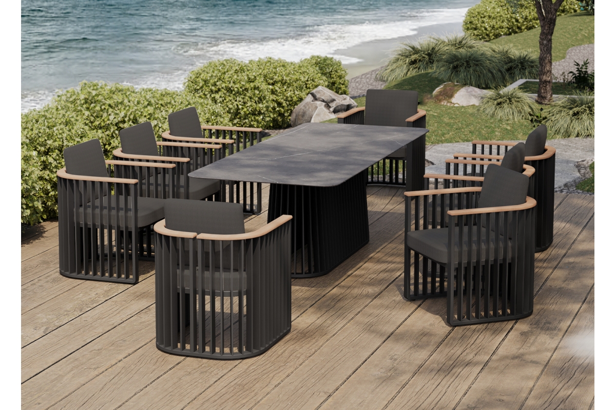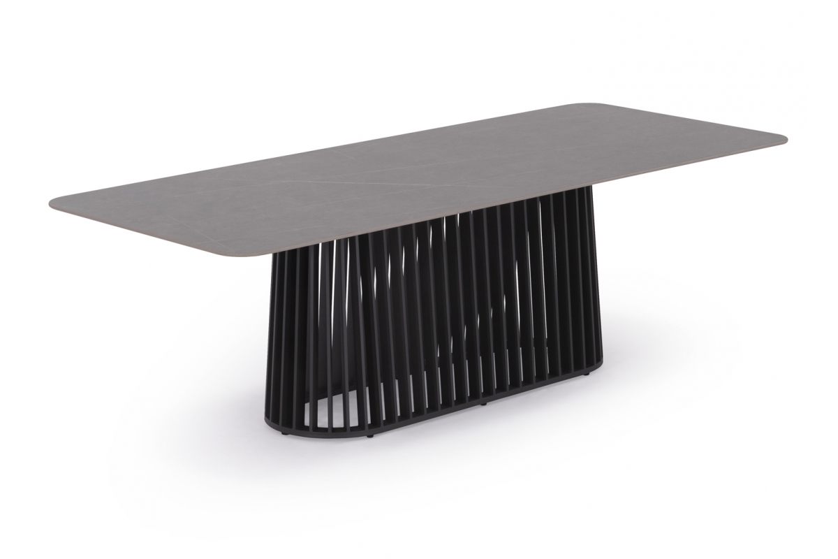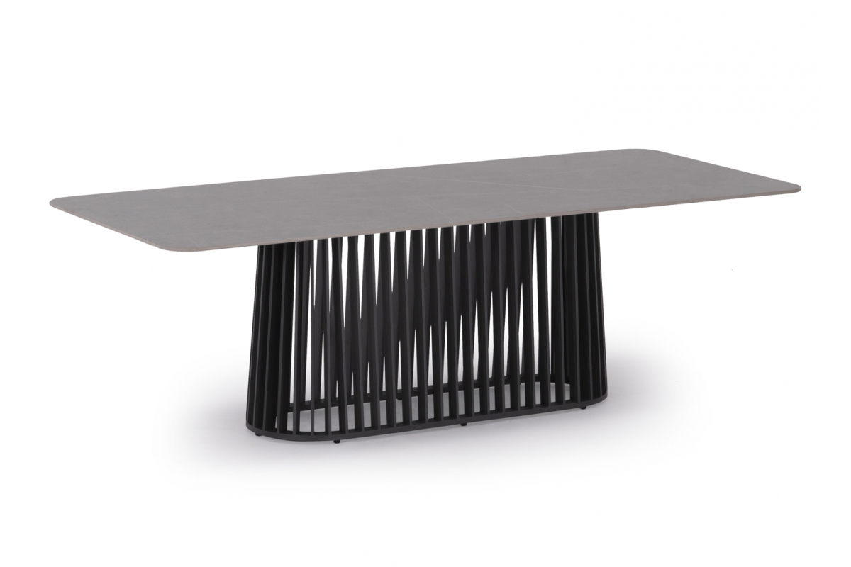 Σας παρουσιάζουμε ένα εντυπωσιακό ορθογώνιο τραπέζι εξωτερικού χώρου της σειράς SIMONA με σκελετό αλουμινίου σε ΑΝΘΡΑΚΙ χρώμα.