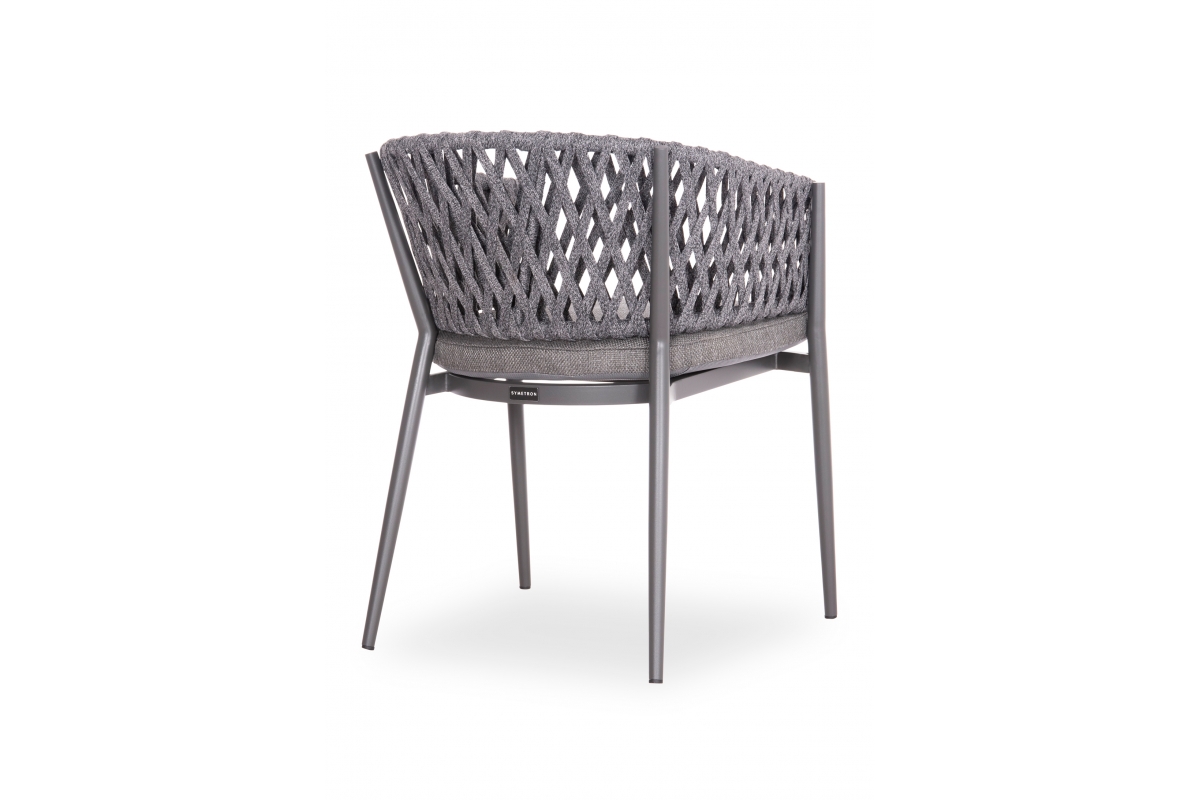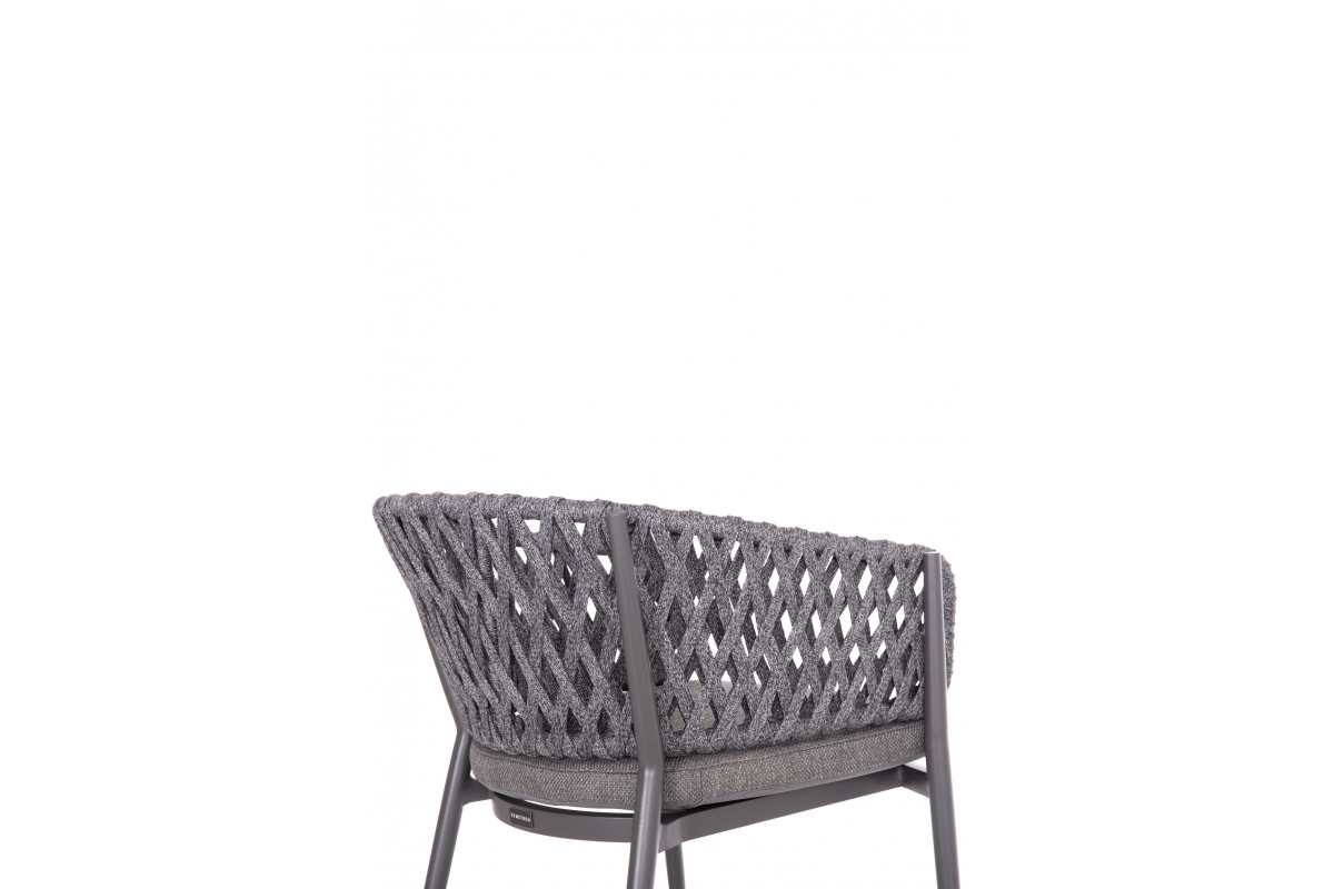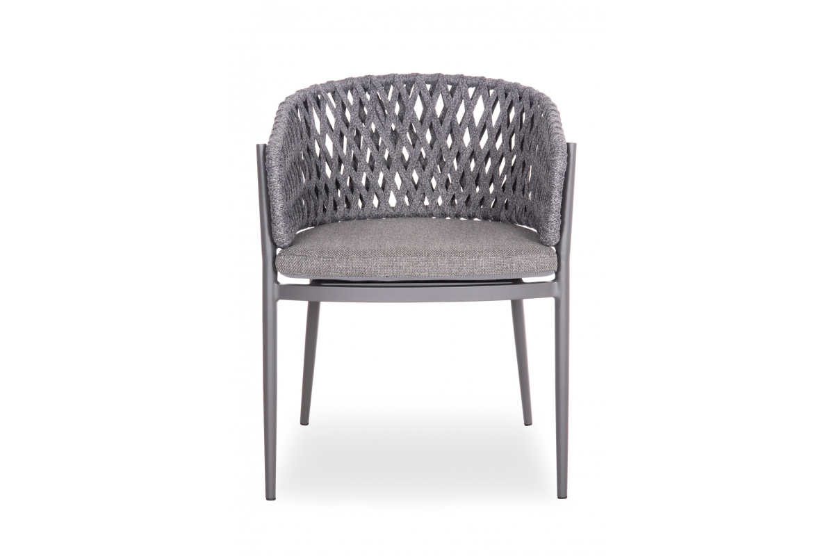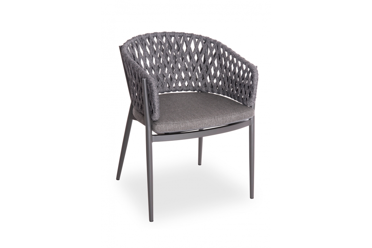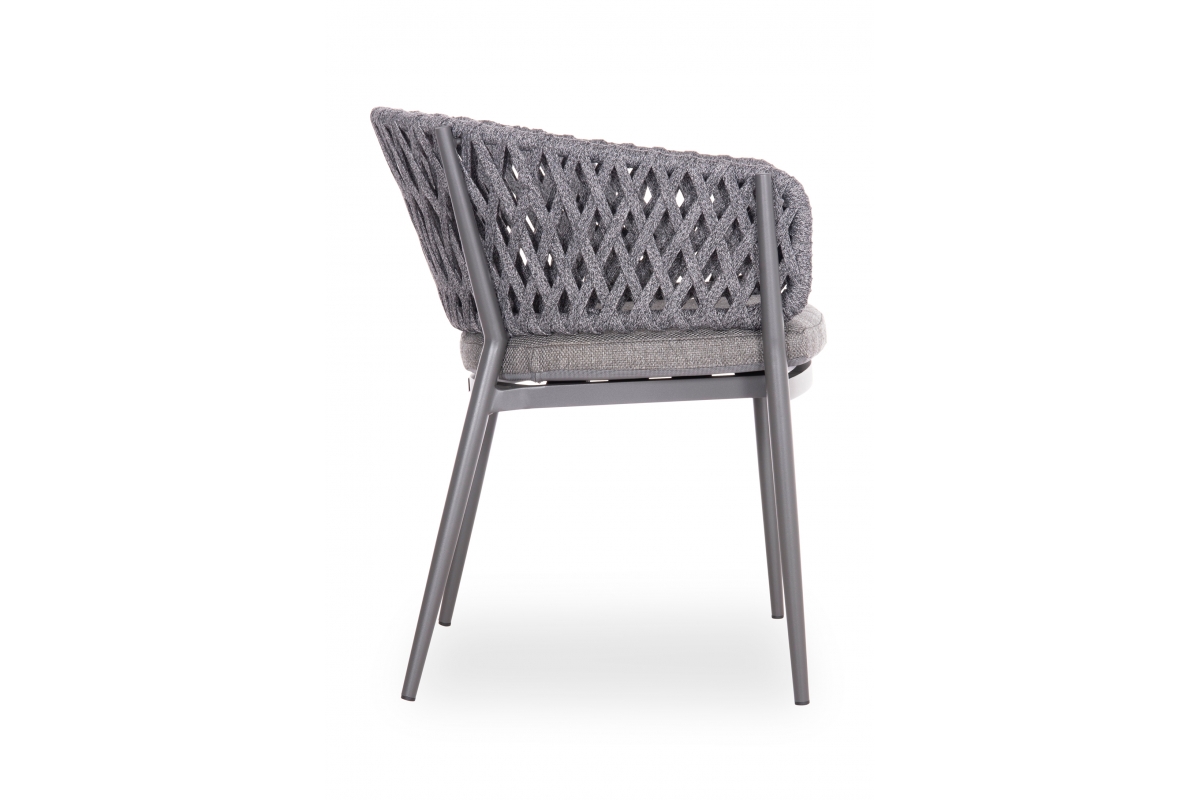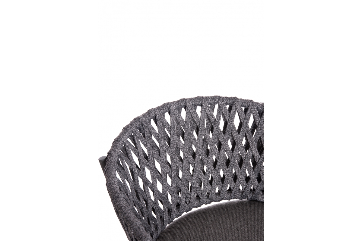 Πολυθρόνα CARMELA, κατασκευασμένη από αλουμίνιο και πολυεστερικό σχοινί ως επένδυση στην ημικυκλική πλάτη αποπνέει πολυτέλεια και άνεση.