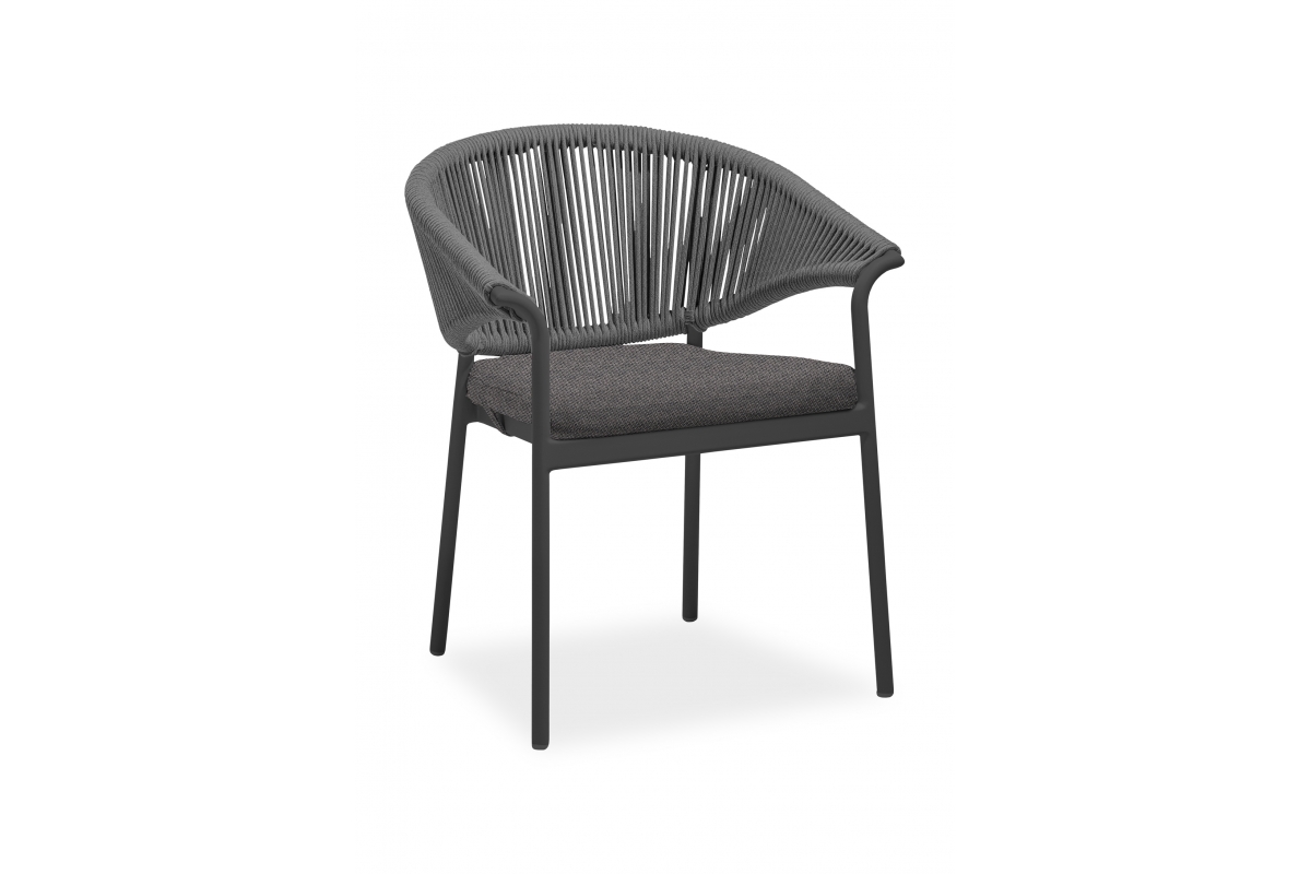 Η πολυθρόνα ERON κατασκευασμένη από αλουμίνιο και σχοινί ως επένδυση στην ημικυκλική πλάτη αποπνέει πολυτέλεια και άνεση.