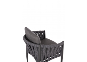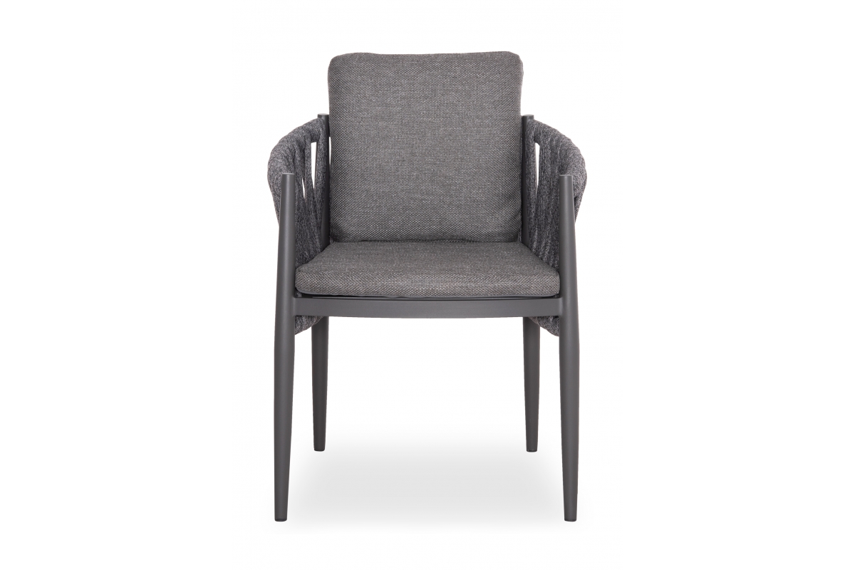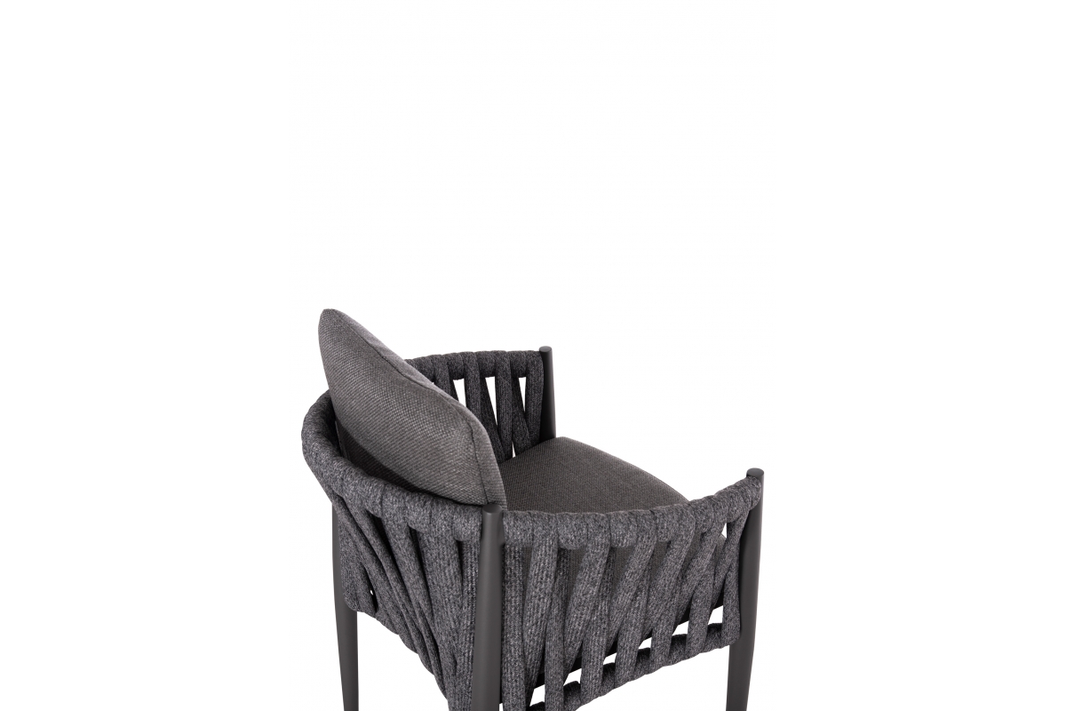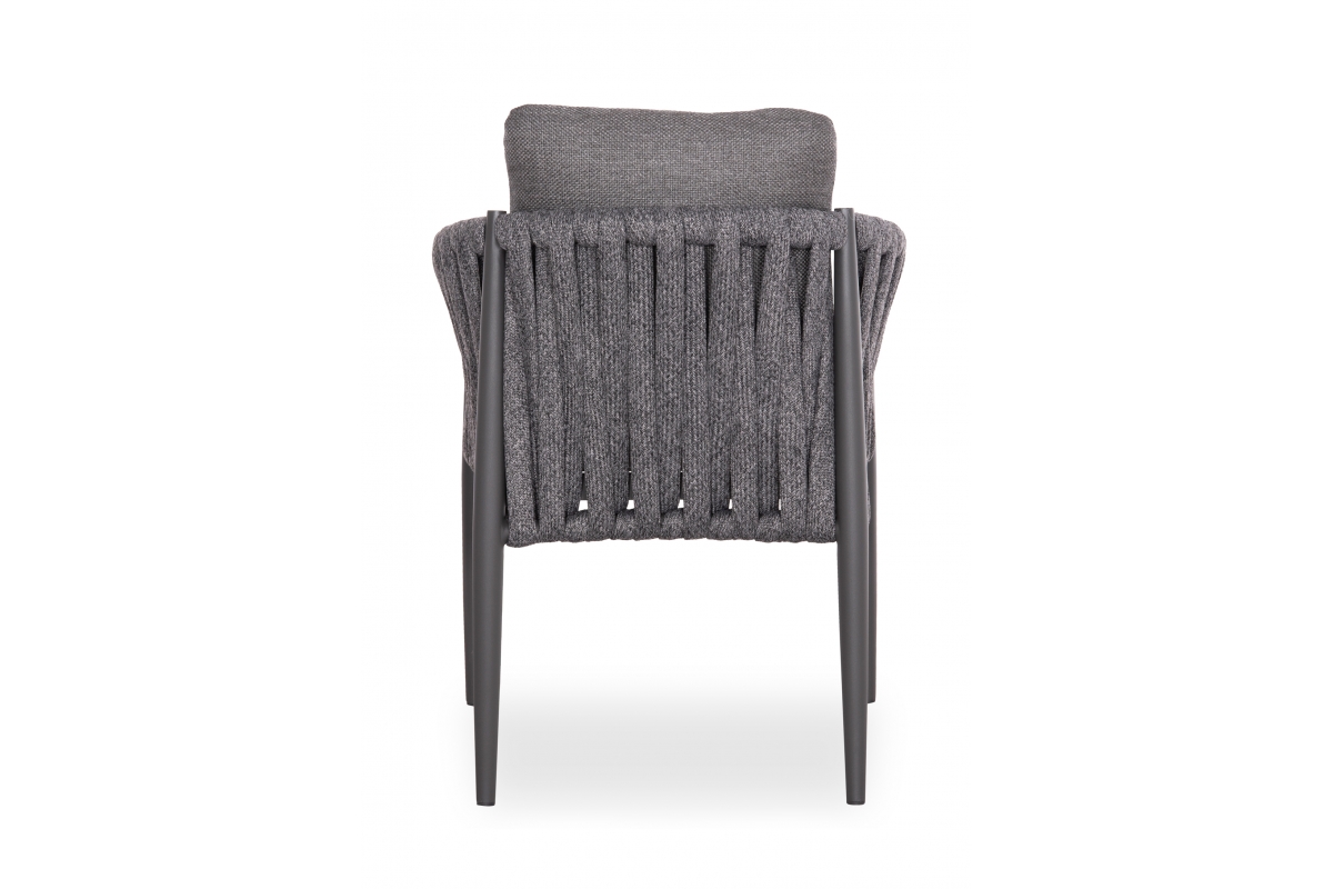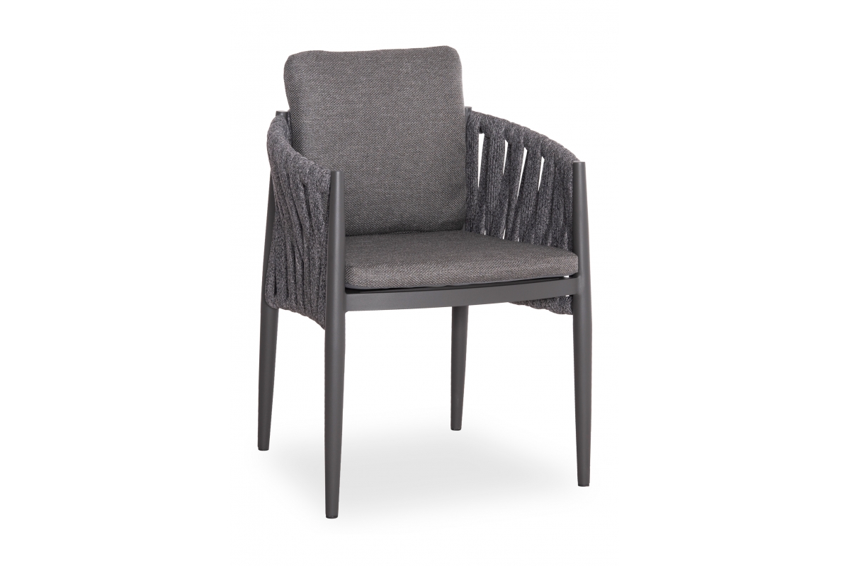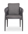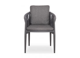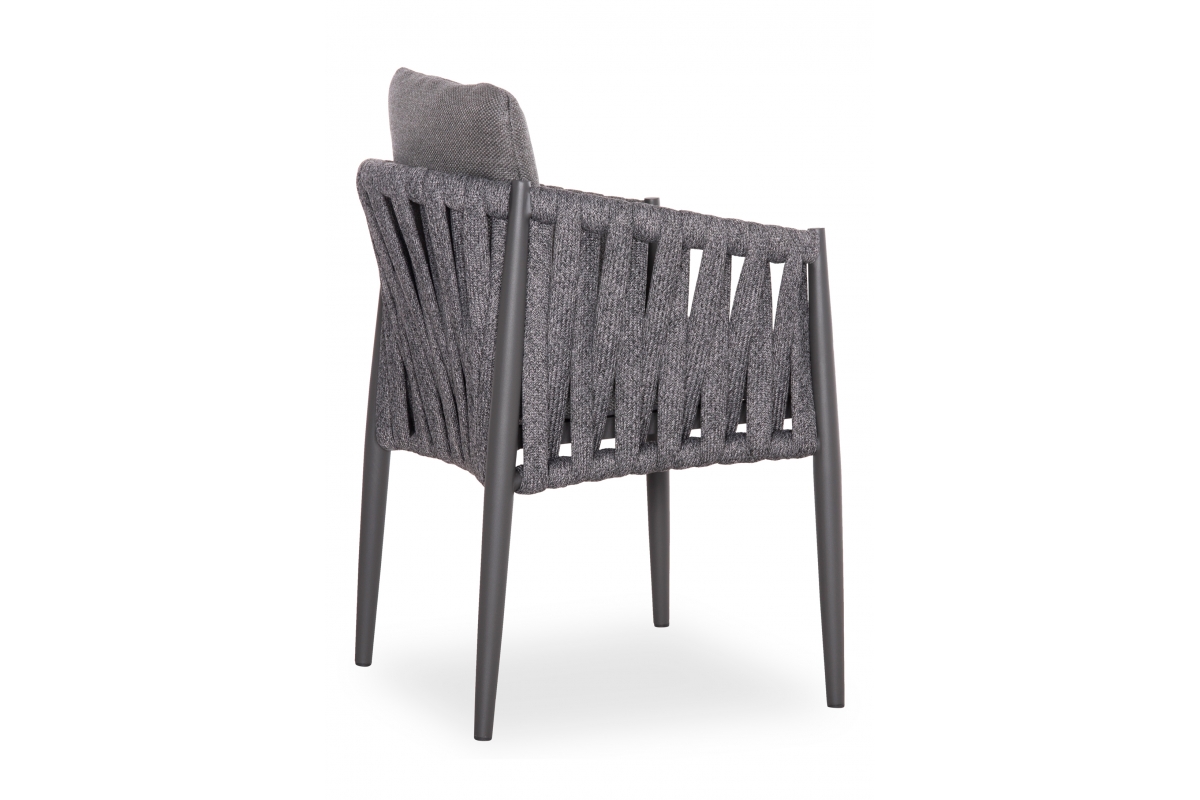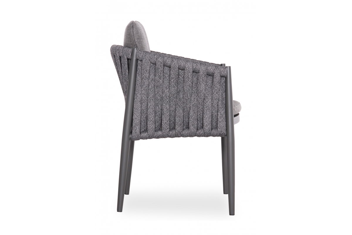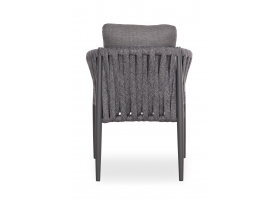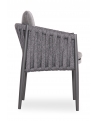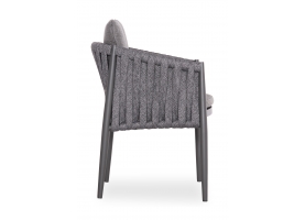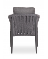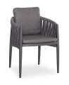 Η πολυθρόνα τραπεζαρίας εξωτερικού χώρου KING. Κατασκευασμένη από αλουμίνιο και πολυεστερικό φαρδύ strap σχοινί ως επένδυση στην ημικυκλική πλάτη αποπνέει πολυτέλεια και άνεση.