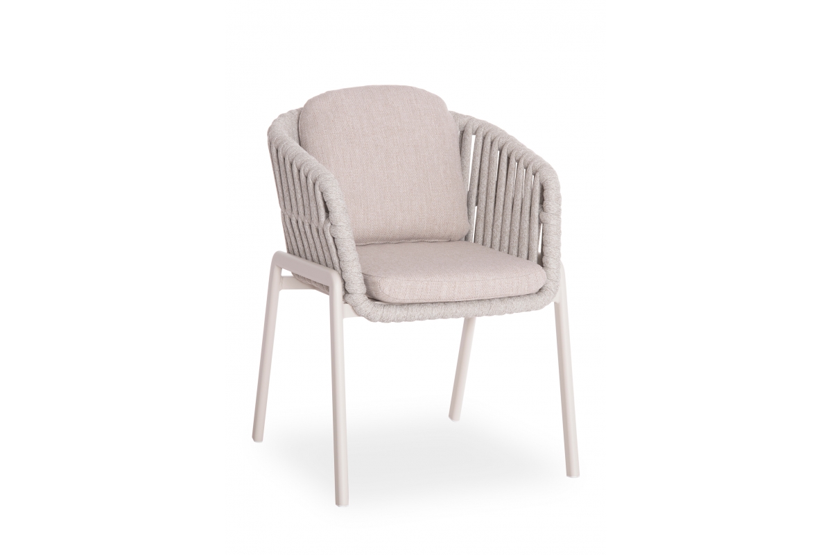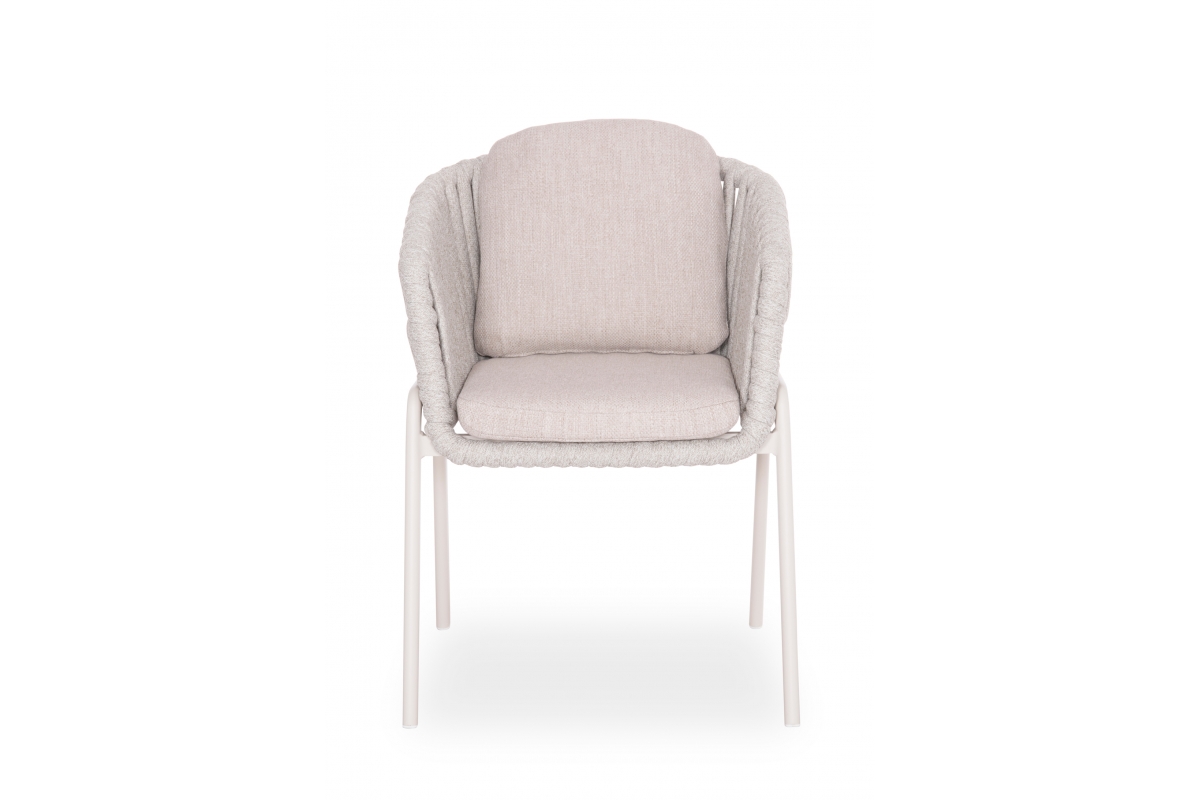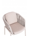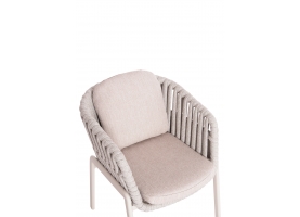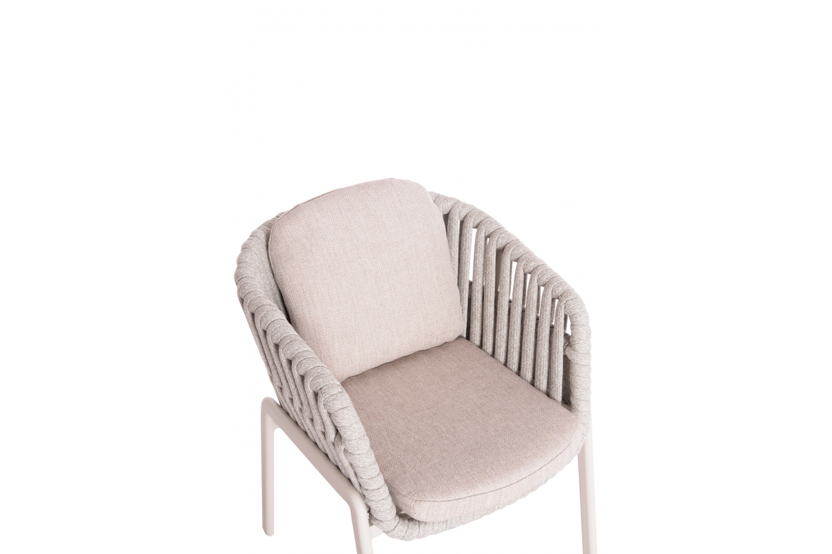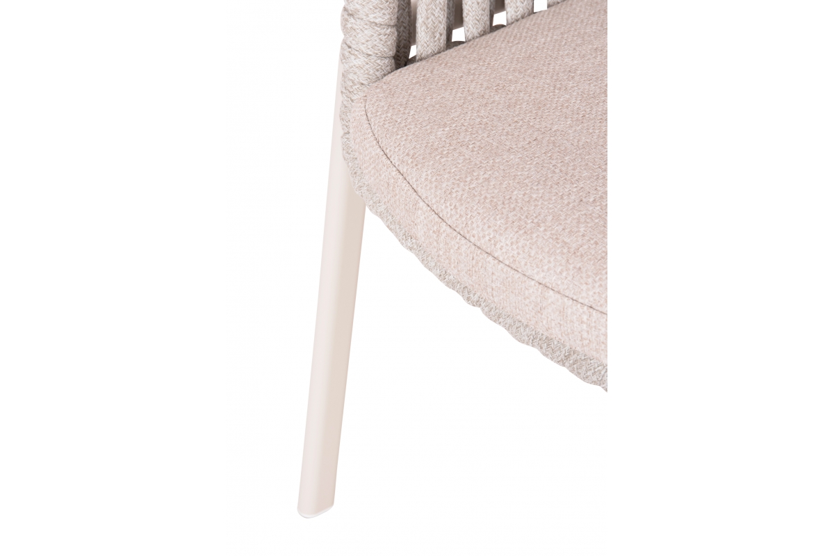 Τα καλύμματα στα μαξιλάρια είναι από OLEFIN ύφασμα σε ΜΠΕΖ χρώμα, το οποίο είναι υδατοαπωθητικό και ανθεκτικό. Το χρώμα του σκελετού είναι ΚΡΕΜ και το μόνο που απομένει είναι την ταιριάξετε με ένα τραπέζι ανάλογης ποιότητας και αισθητικής.