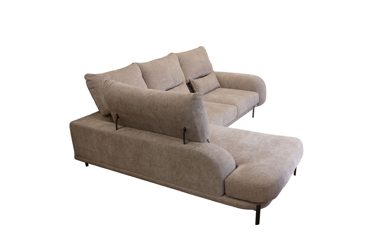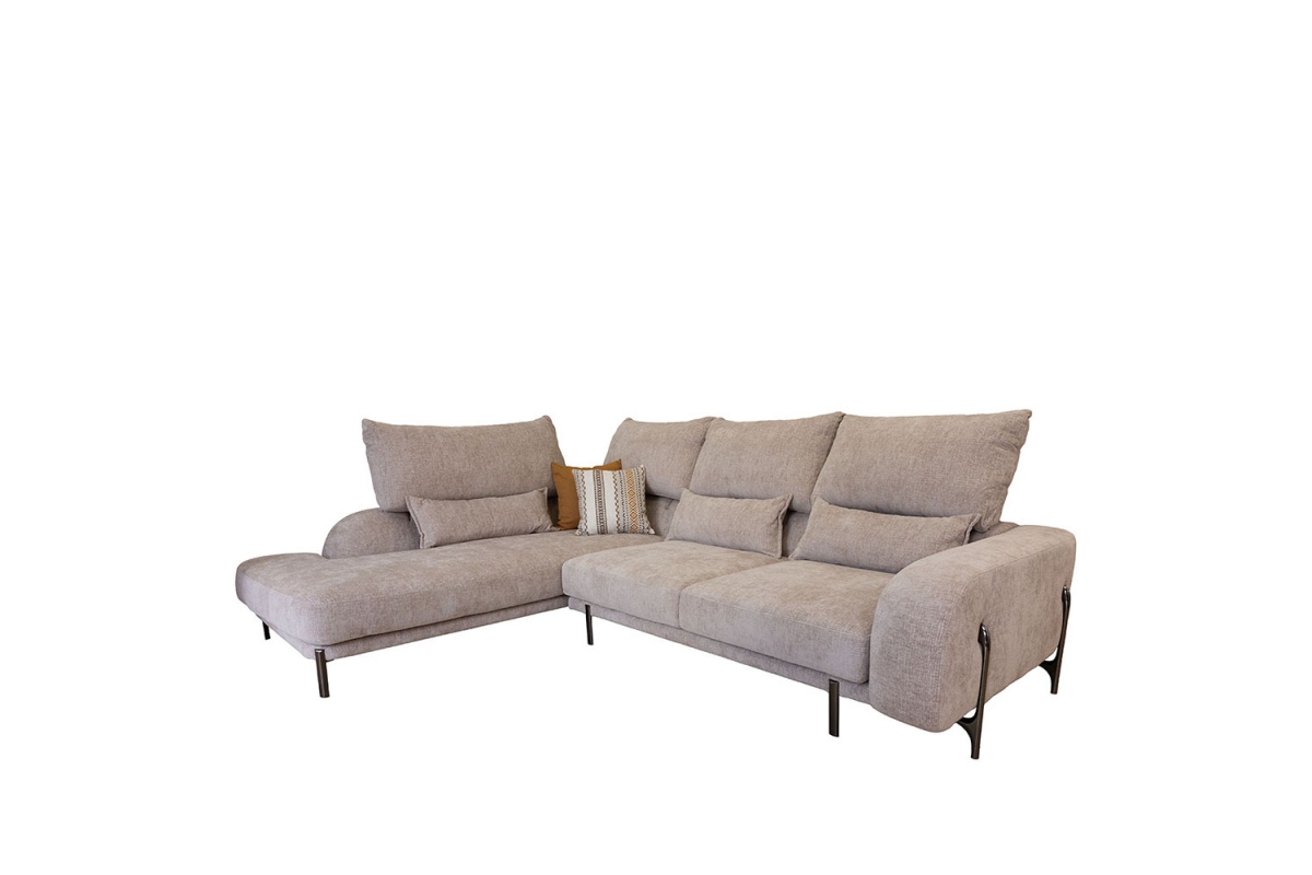 Με ρυθμιζόμενους μηχανισμούς στις πλάτες, προσαρμόζεται εύκολα στις ανάγκες σας, παρέχοντας ανώτερη στήριξη και εργονομία. Εξοπλισμένο με υλικά κορυφαίας ποιότητας, υπόσχεται μοναδική αίσθηση αφής και εξαιρετική αντοχή στον χρόνο. Ο σύγχρονος σχεδιασμός του, με το στρογγυλεμένο μπράτσο και τη λεπτομέρεια του αιματίτη ποδιού του, δένει αρμονικά με κάθε μοντέρνο ή μίνιμαλ εσωτερικό χώρο, ενώ η γωνιακή του διάταξη μεγιστοποιεί την εκμετάλλευση του χώρου και την άνεση για όλη την οικογένεια ή τους καλεσμένους σας.