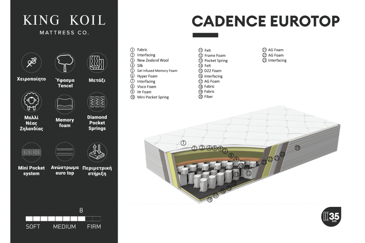 Στρώμα KING KOIL Cadence Eurotop
