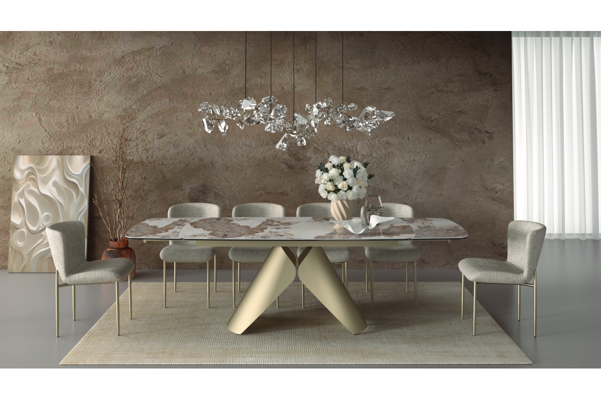 Το τραπέζι φαγητού LOKI GOLD διαθέτει εντυπωσιακή κεραμική επιφάνεια και αποτελεί μία ολοκληρωμένη πρόταση που θα δημιουργήσει ένα ξεχωριστό αισθητικό αποτέλεσμα στο χώρο σας με έντονες επιρροές NEW AGE interior design.