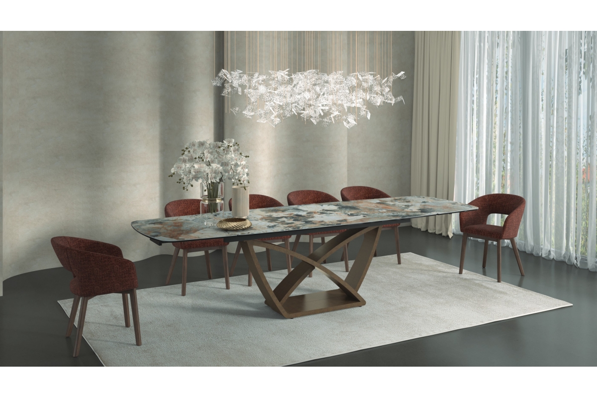 Το τραπέζι φαγητού SISCO διαθέτει γυαλιστερή κεραμική επιφάνεια ανθεκτηκή στο νερό και τις φθορές σε συνδιασμό με μία εντυπωσιακή βάση.
