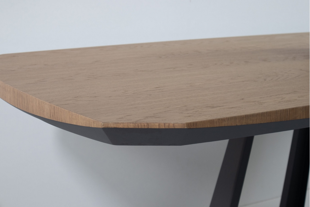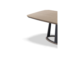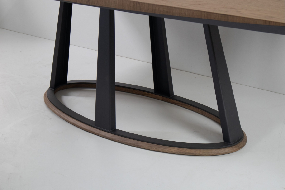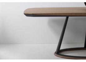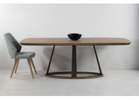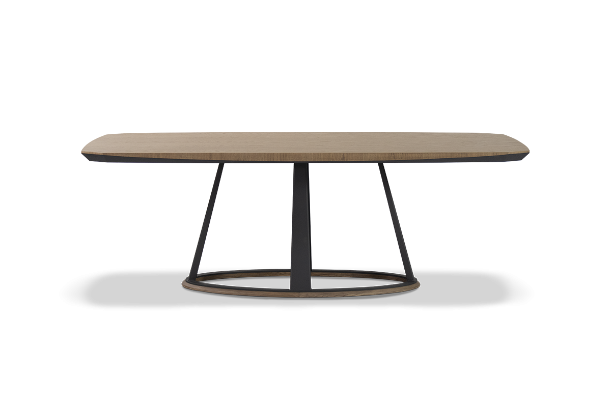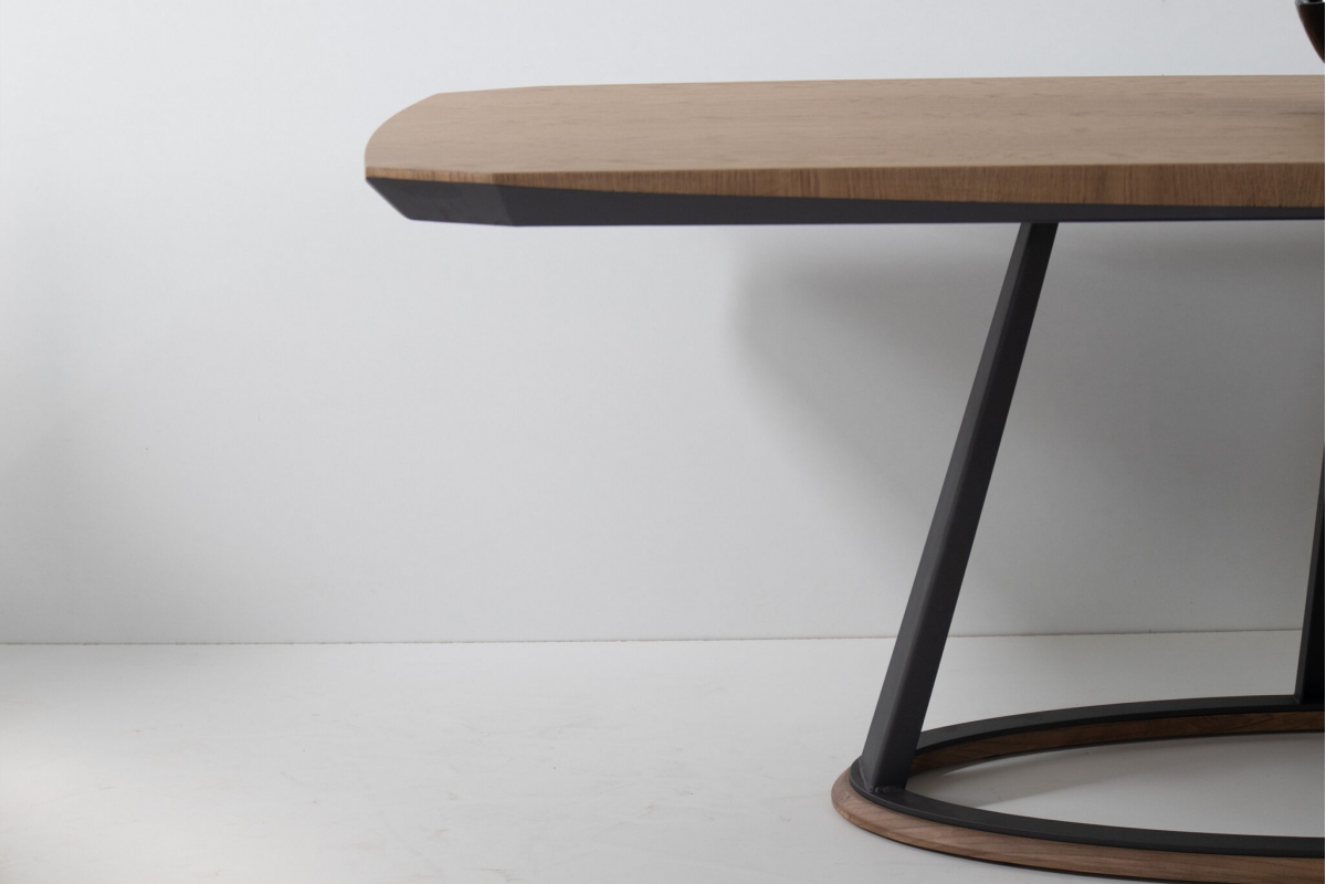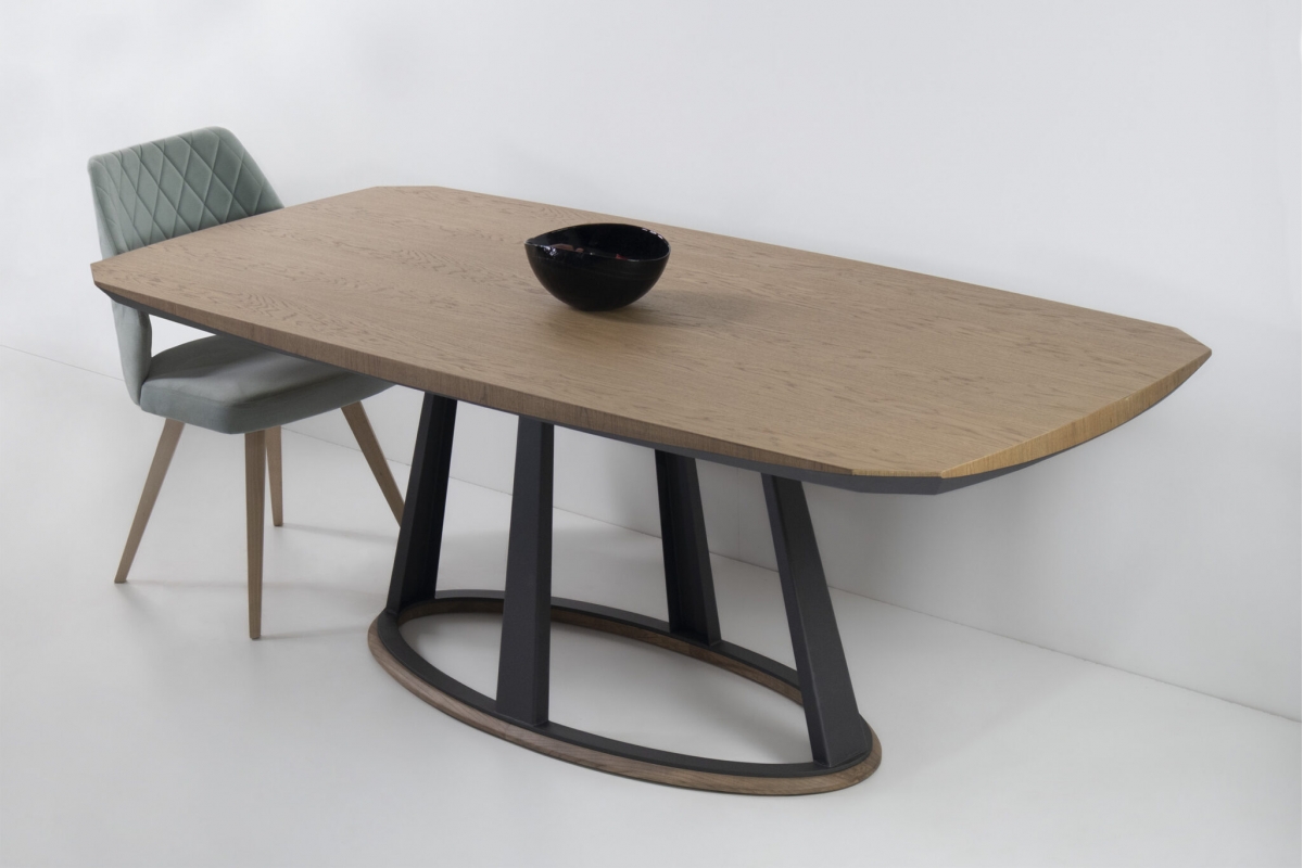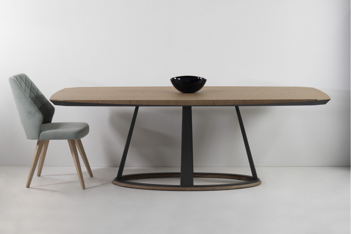 Γεωμετρικά σχήματα ενώνονται με απλές γραμμές και φτιάχνουν μία τραπεζαρία που «ζεσταίνει» το χώρο με το χρώμα και τη ζεστασιά του ξύλου. Ένα έπιπλο που ξεχωρίζει με την απλότητά του και με την εμφάνισή του αποδεικνύοντας ότι η ποιότητα και η υψηλή αισθητική δεν χρειάζονται την υπερβολή.