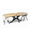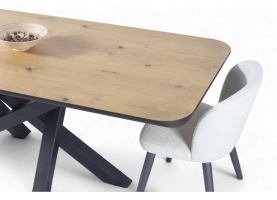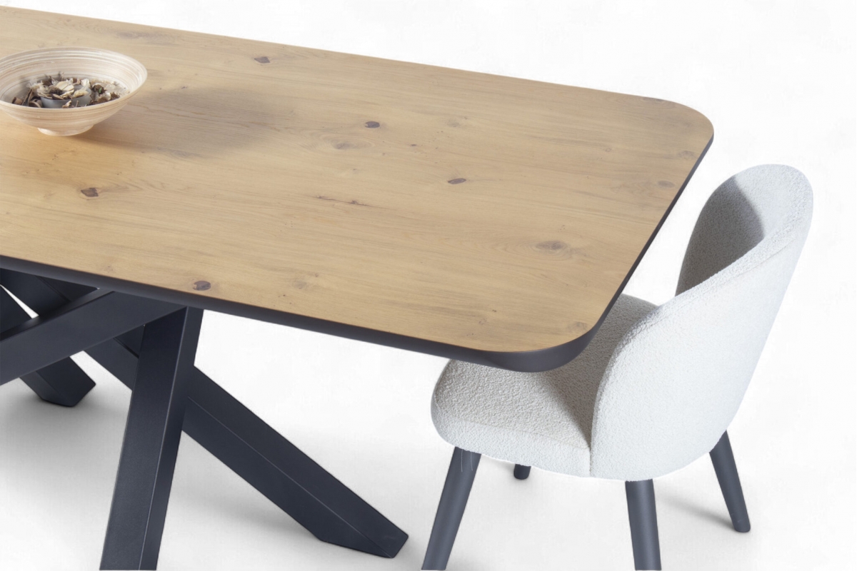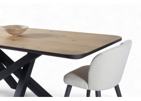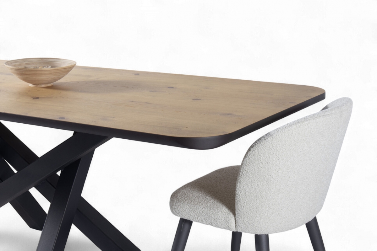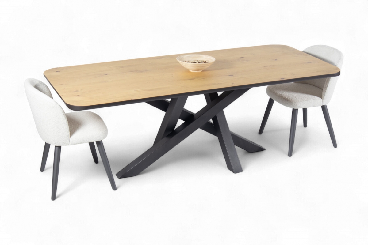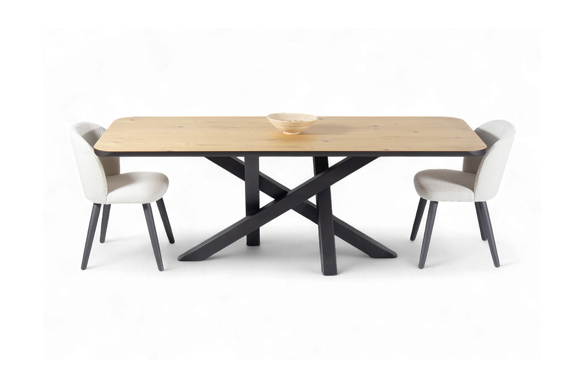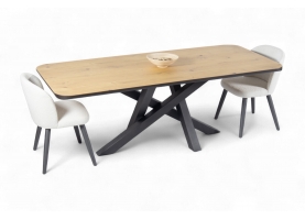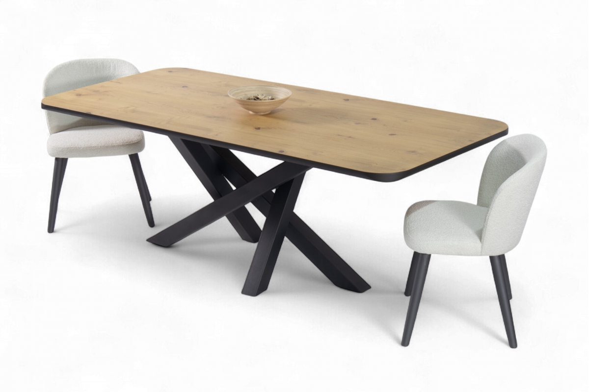 Εισάγετε μια πινελιά σύγχρονης κομψότητας στον χώρο της τραπεζαρίας σας με το προσεκτικά κατασκευασμένο τραπέζι μας. Ο μινιμαλιστικός σχεδιασμός συνδυάζει μια συμπαγή ξύλινη επιφάνεια με μια κομψή, διασταυρούμενη μεταλλική βάση, προσφέροντας αντοχή και μοντέρνα αισθητική. Ιδανικό για οικείες συγκεντρώσεις, αυτό το τραπέζι λειτουργεί ως το τέλειο κεντρικό κομμάτι για κάθε κομψό σπίτι.
