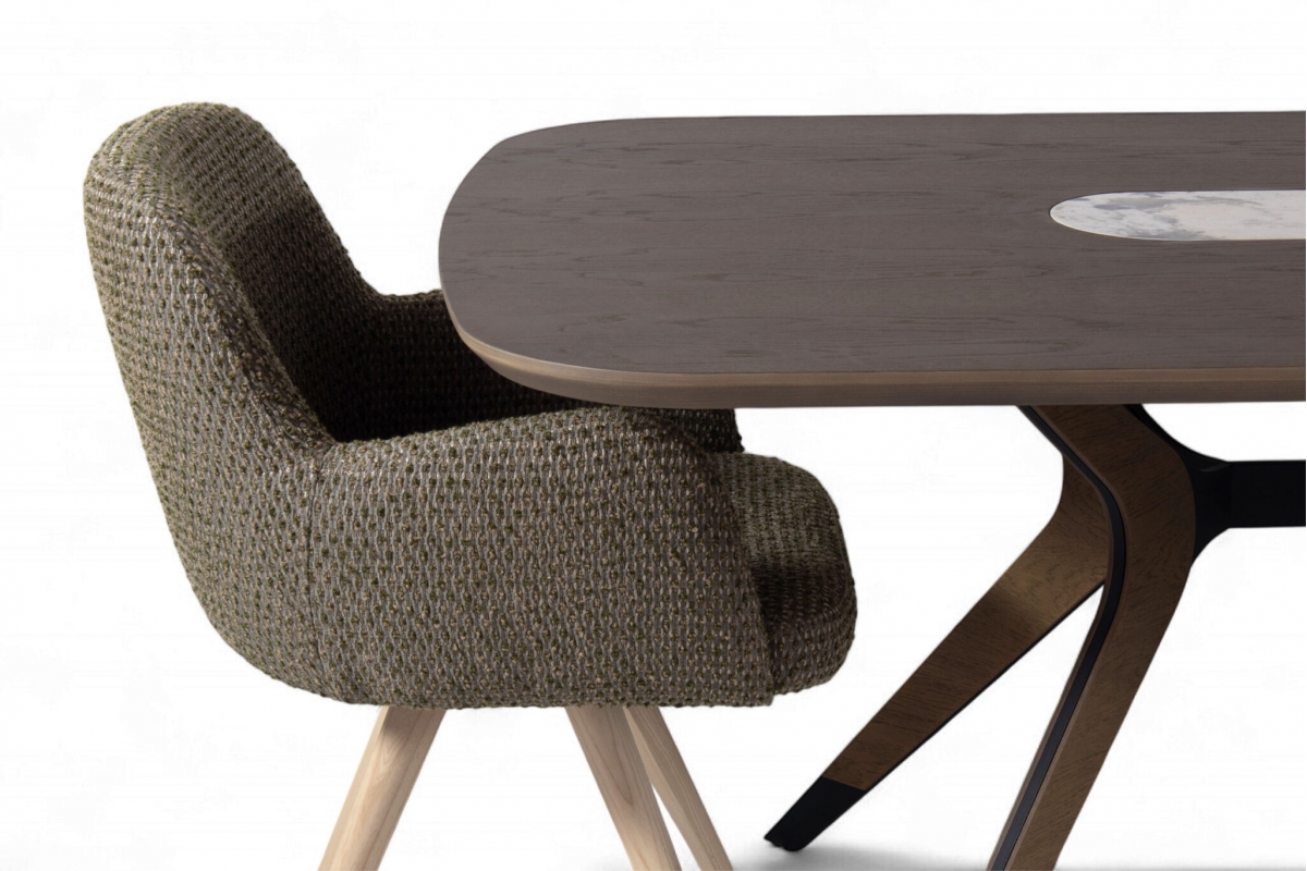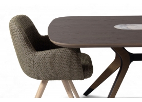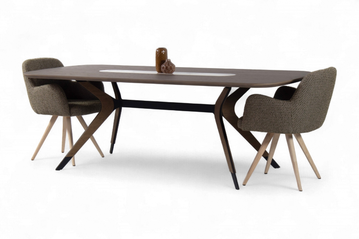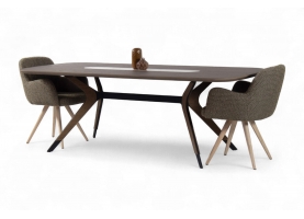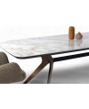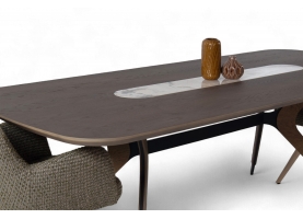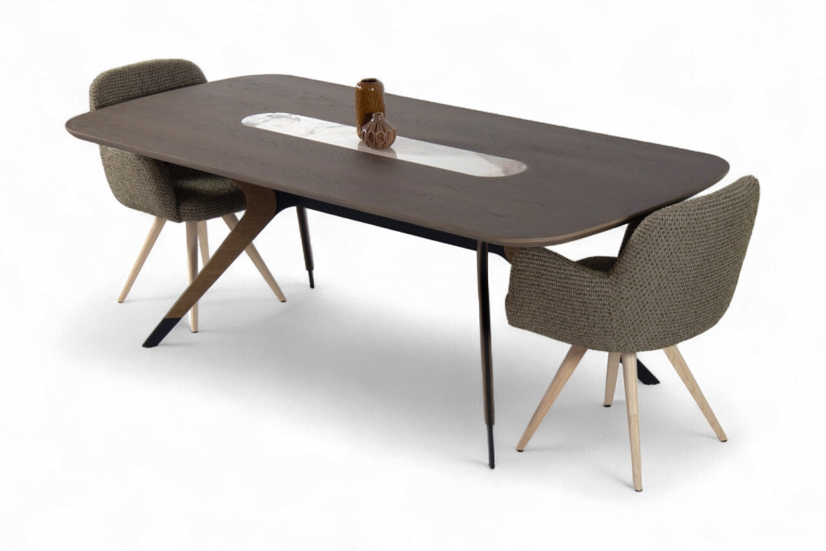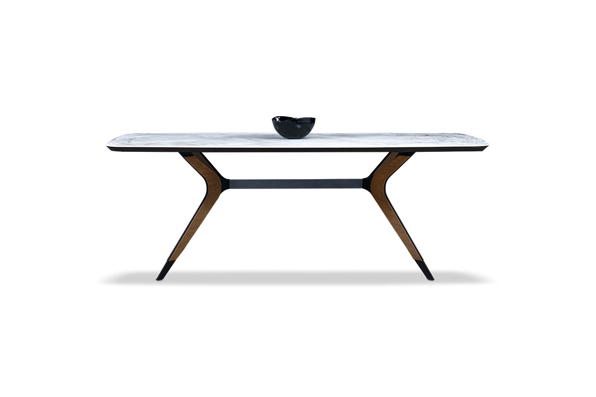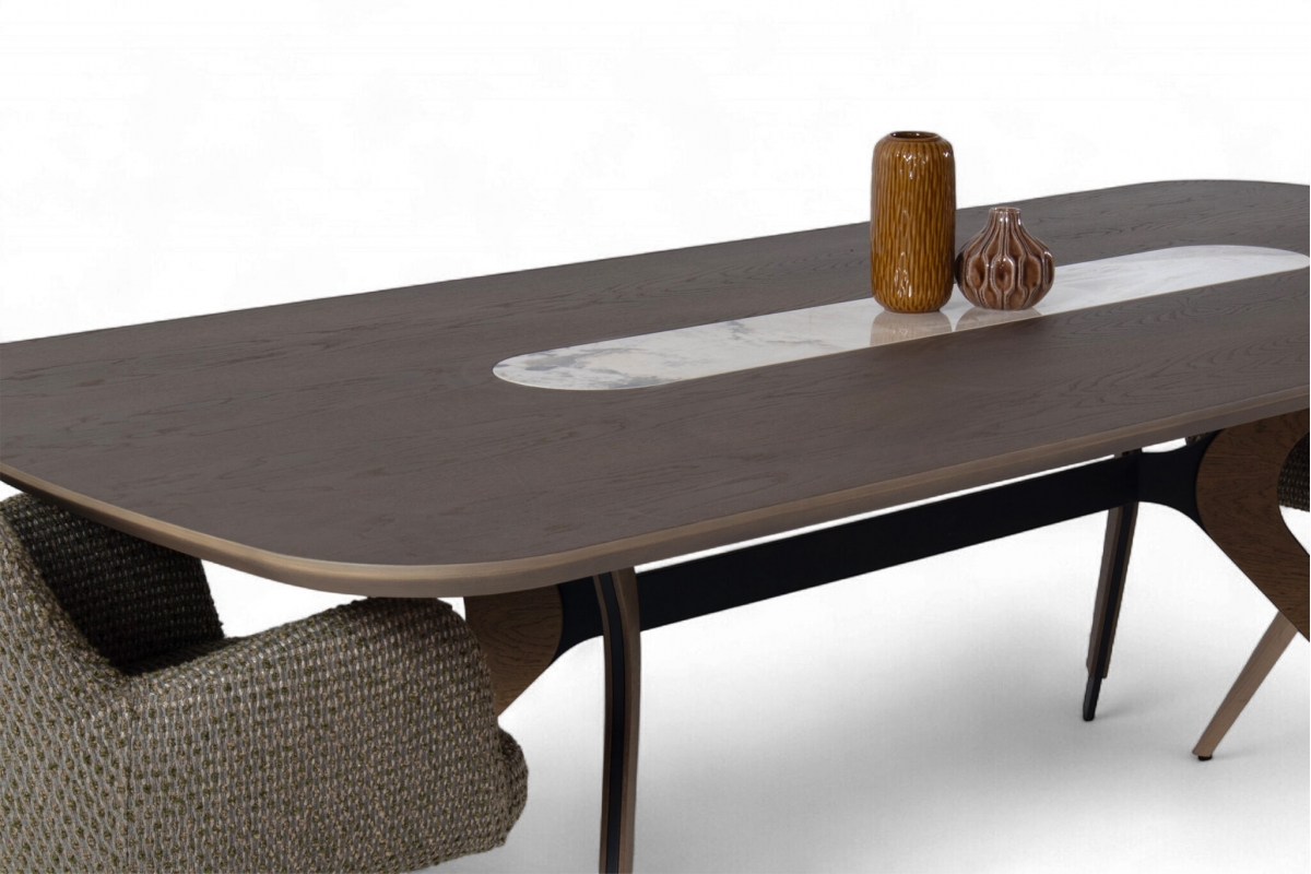 Μία τραπεζαρία που συνδυάζει το μέταλλο και το ξύλο σε ένα έπιπλο με ιδιαίτερο σχεδιασμό στη βάση με μεταλλικές λεπτομέρειες που προσφέρει μία διακριτική πινελιά μοντέρνας διακόσμησης. Η τραπεζαρία διαθέτει ανθεκτική, κεραμική επιφάνεια με σχέδιο μάρμαρου που θα τραβήξει τα βλέμματα.
